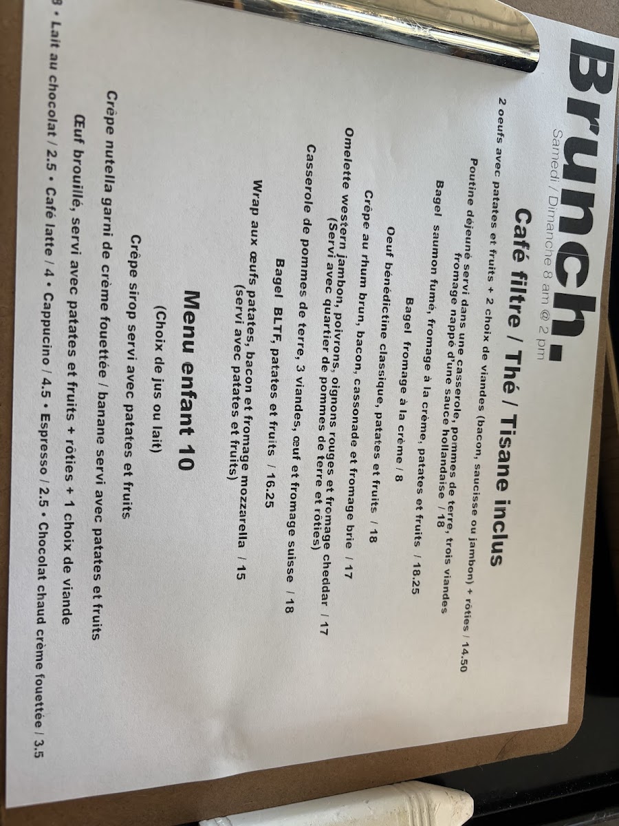 Menu enfants 10 ans et moins