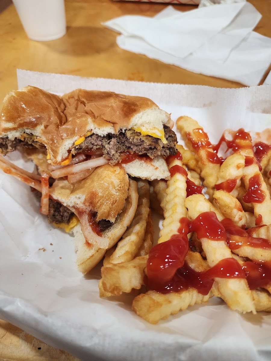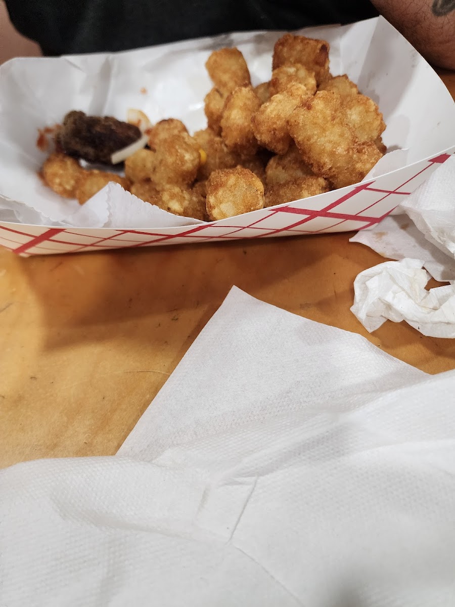 The Hamburger and Fries/Taters Tots were really good! I wanted Chicken Fingers but they serve shrimp and the young man said sometimes they cook in the same oil... I have a shellfish allergy so I am glad I asked. The ice cream looked so good. I will get it next time! Lol