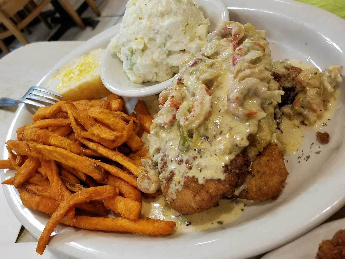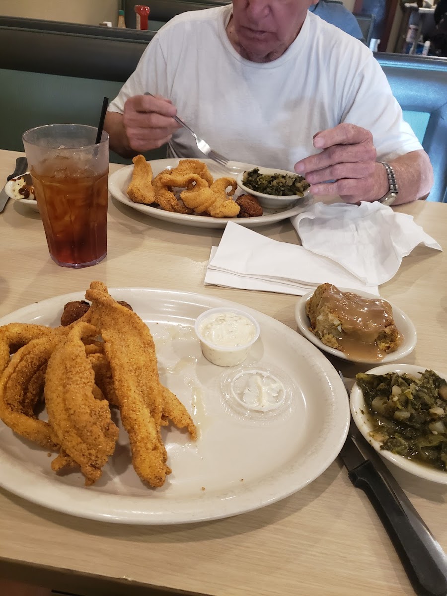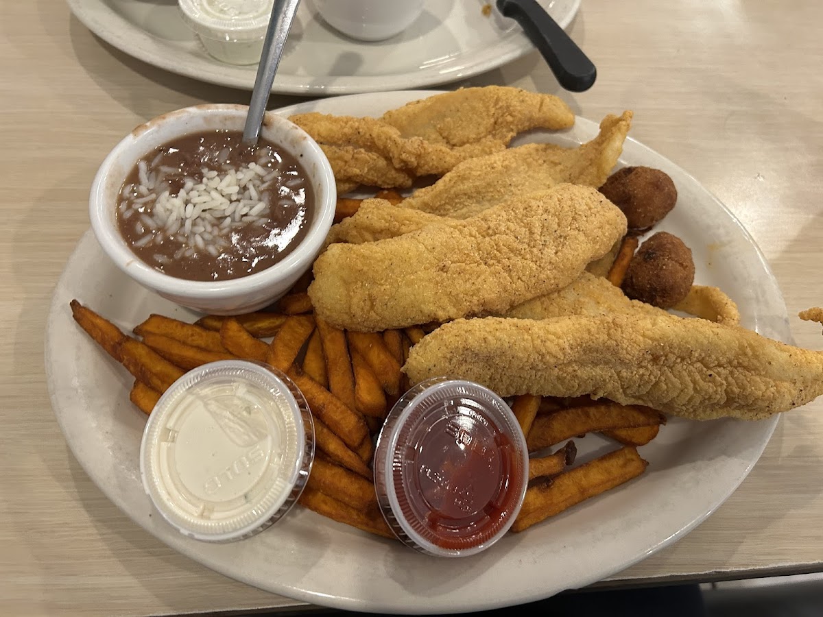 The "Southern Gold" (or something like that) was one of the best foods I've ever had. Chicken breast filled with seafood stuffing, fried, and topped with crayfish sauce. Absolutely stupendous. The red beans and the greens were also great sides. The eggplant parmesan was good too, but that sort of thing can be found just about anywhere. No points off, I'd just say that the Italian stuff isn't their specialty. Go for the Southern food and you'll probably be exceptionally happy.
