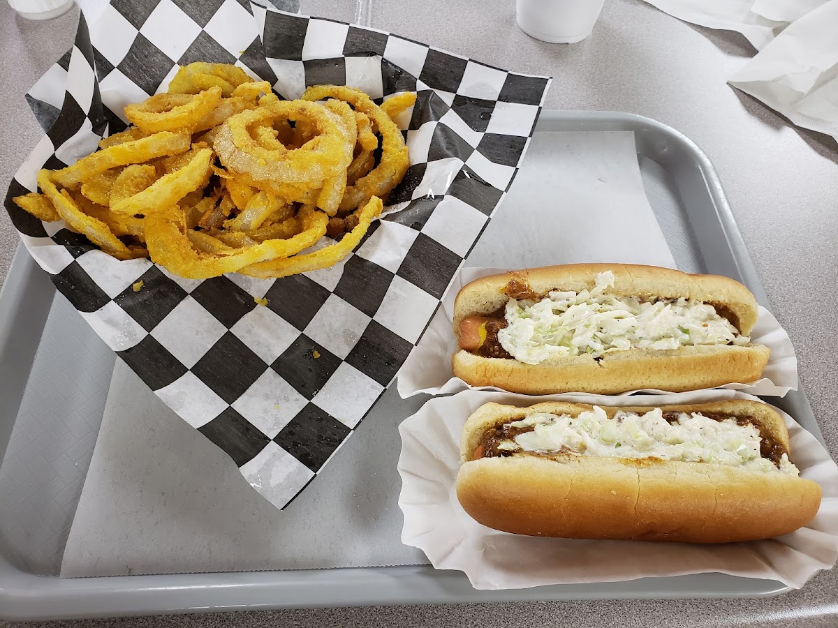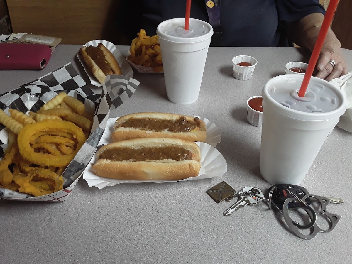 What a surprise!! I am not one to try small diners, but I am so glad I did. The food was fantastic. I ordered the hot dog with chili, mustard, onions. The hot dog and chili was not the most appetizing, but let me tell you...it was absolutely amazing!! The chili had a slight spice to it. Truly, the best hotdog I have had. The onion rings were good too. 2 people in our group had the hamburger steak and mashed potatoes. They said their meal was amazing too. 5 of us ate for 57.00; very reasonable. We will definitely be back!