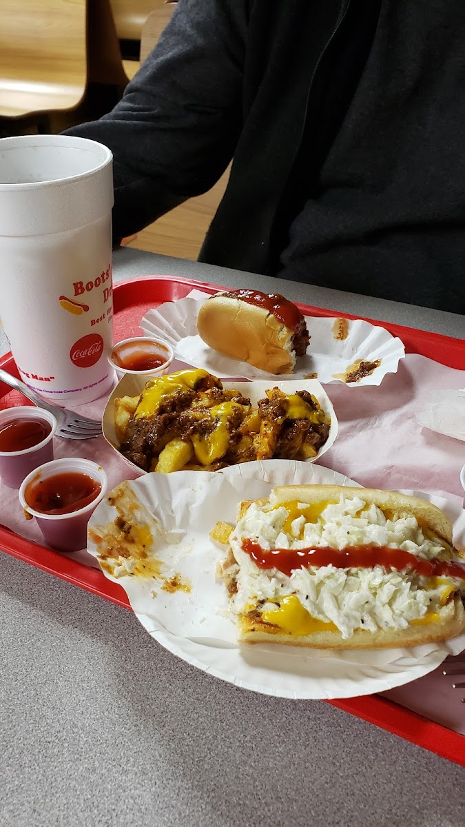 So here's the deal -- my wife and I had a random hot dog craving (which almost never happens), and we figured we'd go to the spot we knew in Spartanburg. But that drive? A bit much for a quick bite. But I told her what a coincidence I seen a Boots' when I went to the lawn mower shop! Bless that mower, because now we've got a new go-to spot. Let's talk food: My wife had the fish and shrimp -- fresh like it swam here. I got the Boots' Burger with onion rings that crunched louder than the fans in the dining room (which, by the way, were working overtime. Not sure if it was the AC or a tribute to NASCAR, but it was breezy in there). The vibe is pure old-school diner meets car guy dream garage. Clean, cool, and loaded with personality. We told the staff it was our first time and they couldn't have been nicer. Friendly, helpful, and you could tell they actually liked being there. Rare these days. We've been to the Spartanburg location -- and it's good -- but this one hit different. Could've been the food, the time of day, or maybe those crispy onion rings had me seeing stars. Either way, we're coming back.