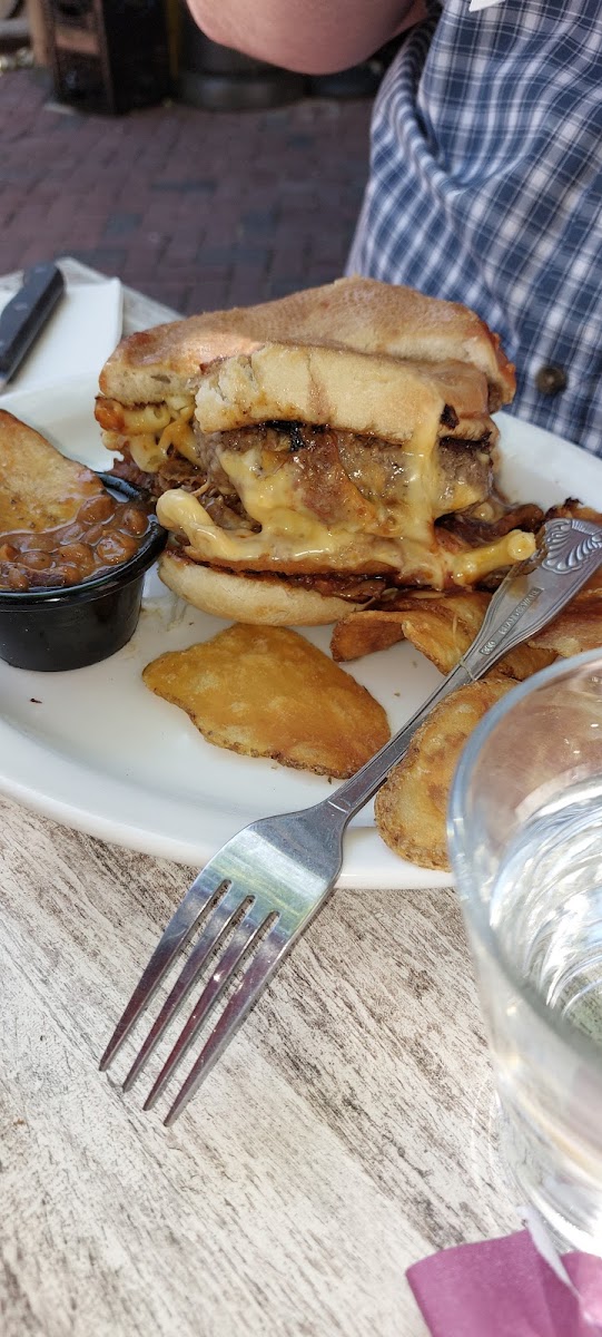 We were hungry while walking around Salem. We wanted to walk in somewhere a little more casual. We ended go at Boston Burger Company. We split the Mac Attack burger. It was simply DIVINE! The burger was a little overcooked, but it wasn’t dry and the Mac and cheese on it helped. The chips were nice and crispy too. The cole slaw was sweet - not my jam. The baked beans were really good! Dip your chips in them. Service was good, even though they were very busy.