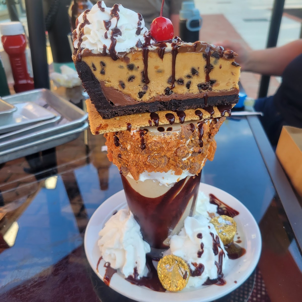 MASSIVE food portions, amazing burgers and shakes. 420 deal blew us away. we had the 420 burger and the smooth operator shake. seriously insane, a heart attack waiting to happen but one of a kind experience. atmosphere and service were excellent too. Sophia was our waitress and she was so kind. THANK YOU!!!