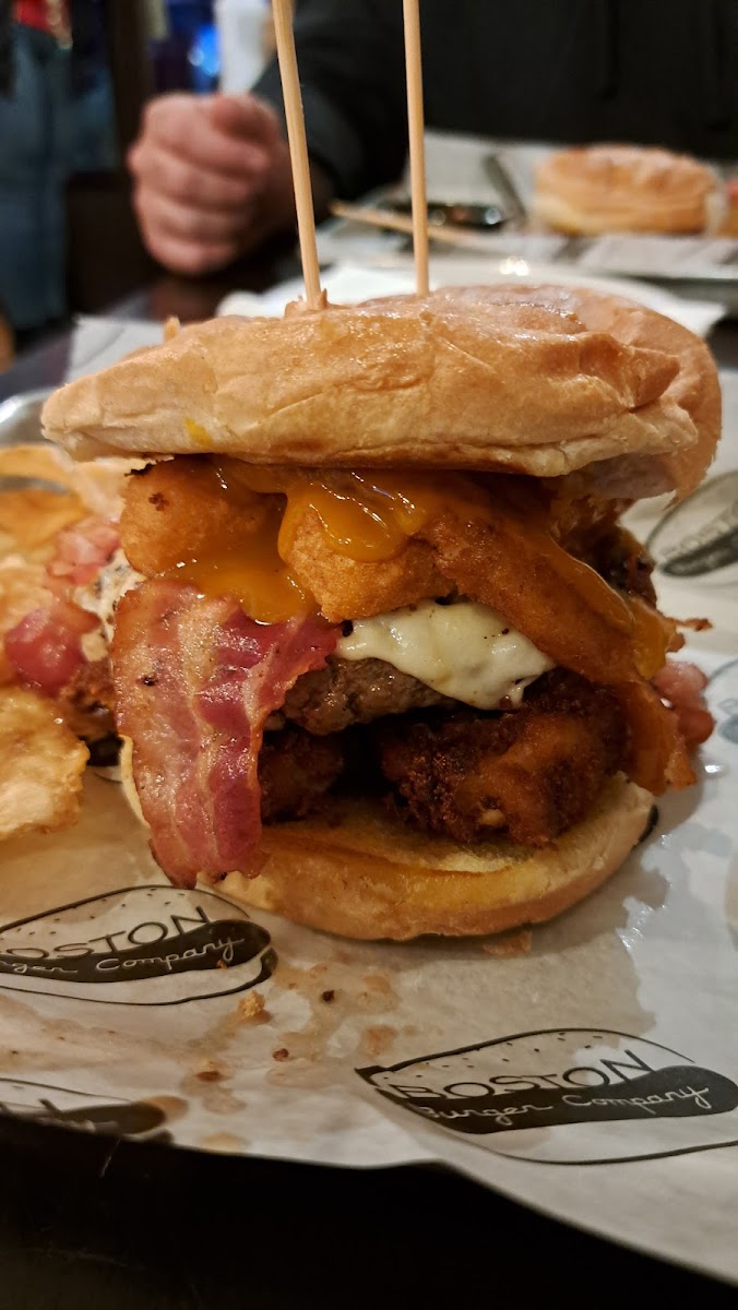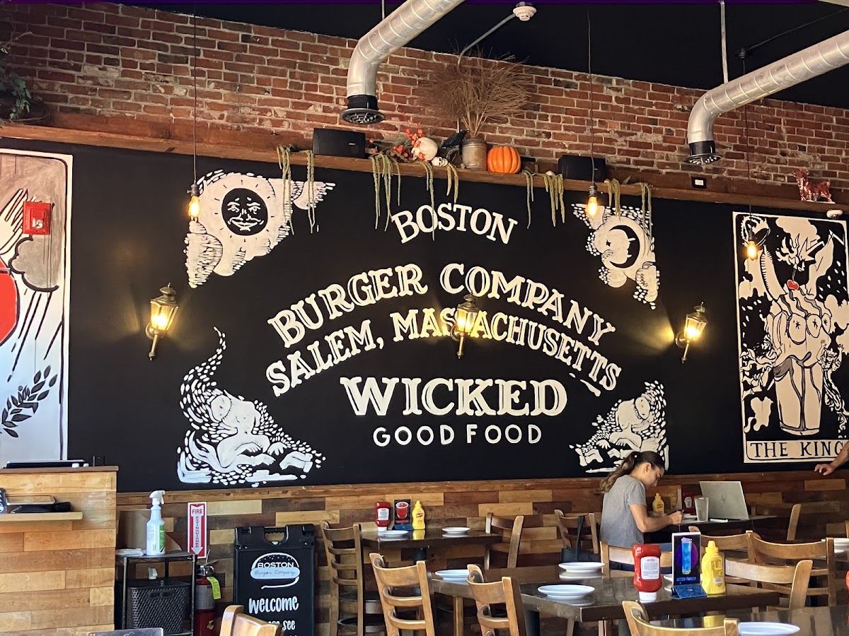 Boston Burger Company in Salem was one of the most fun food stops we made! The energy inside is laid-back but lively, and the menu is full of bold, creative choices that are just as tasty as they are over-the-top. We tried a few burgers—each one stacked high and packed with flavor. The sweet potato fries were crispy, the homemade chips were a great touch, and everything came out hot and fresh. No complaints from anyone at our table! My son ordered the Red, White & Boom Freak Frappe, and although they were out of the cotton candy that usually tops it, they gave him a big slice of cake instead—which he was more than happy about! It was a sugar lover’s dream and definitely became one of his favorite moments from our trip. Great food, friendly staff, and a fun, family-friendly spot. Definitely recommend stopping in if you’re in the area and ready to treat yourself!