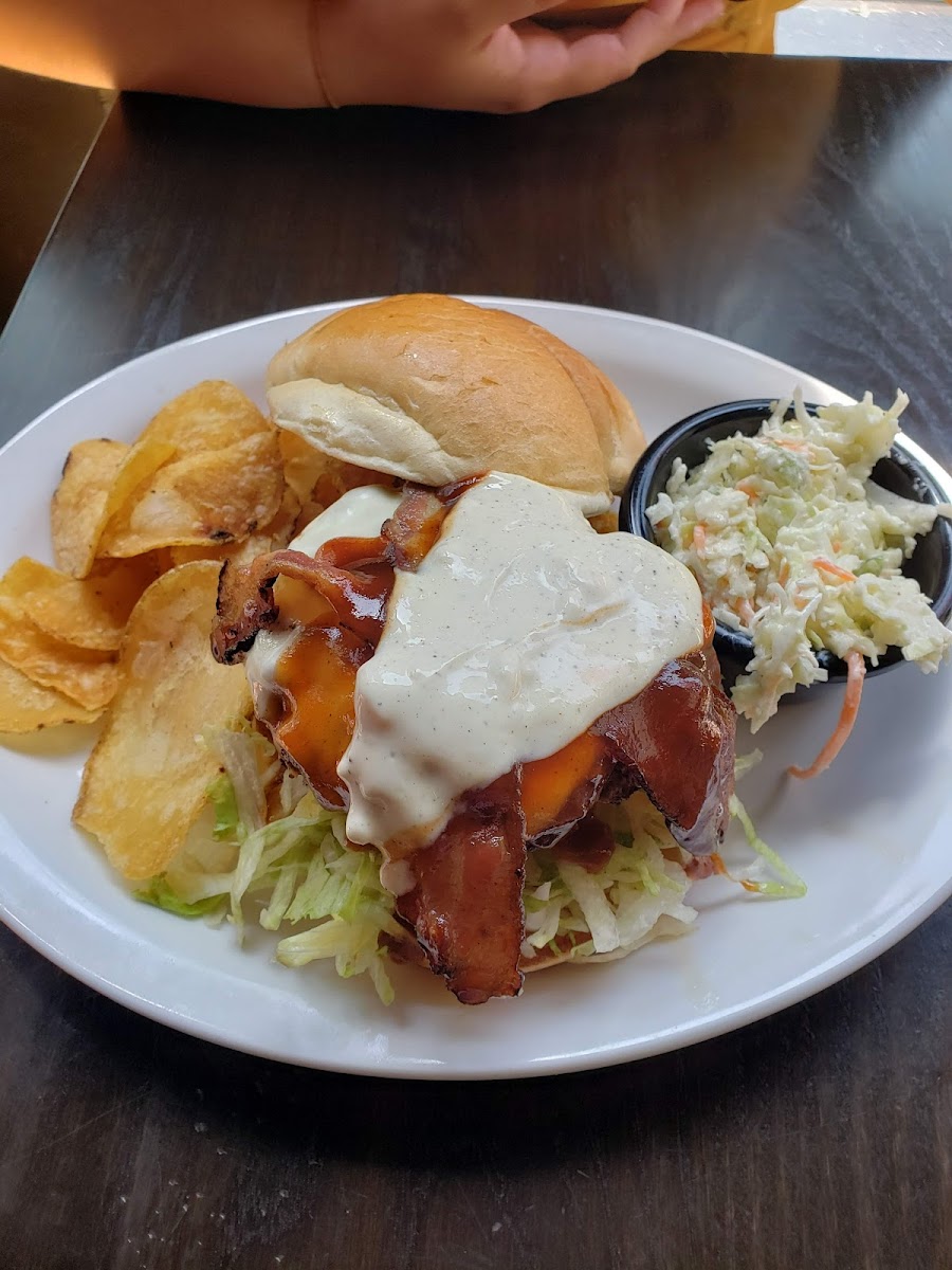 While waiting for a Pokémon Go meet-up to start, I decided to stop in and get something to eat. The moment I stepped in the door, a host/server immediately came over to greet me. I was escorted to a small table by the wall. Within a minute or two, my server Chloe came over and greeted me. She was extremely friendly and attentive. During my visit, she came over at least one time to make sure the food was to my liking and once to see if I wanted anything else. The kitchen staff should also be applauded. I ordered my burger to be cooked well done. And it was. No pink at all. The one I got was called the Burger Bomb and it is appropriately named. Look at its size! Their homemade potato chips are the best I have ever eaten. Highly recommend to anyone visiting Salem.