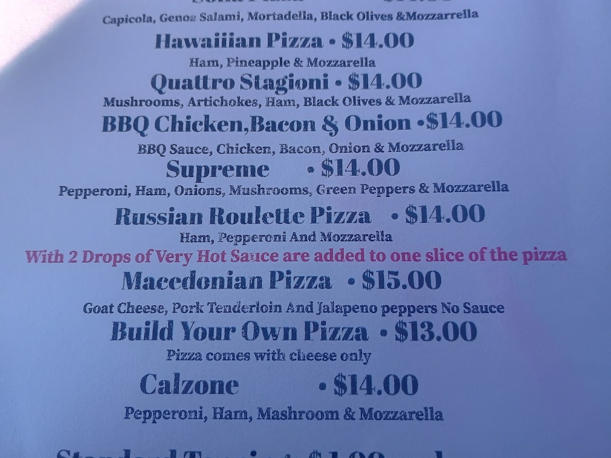 Ham, pepperoni and mozzarella. With 2 drops of very hot sauce are added to our slice of the pizza