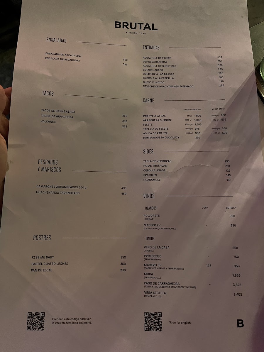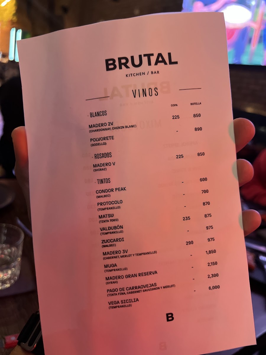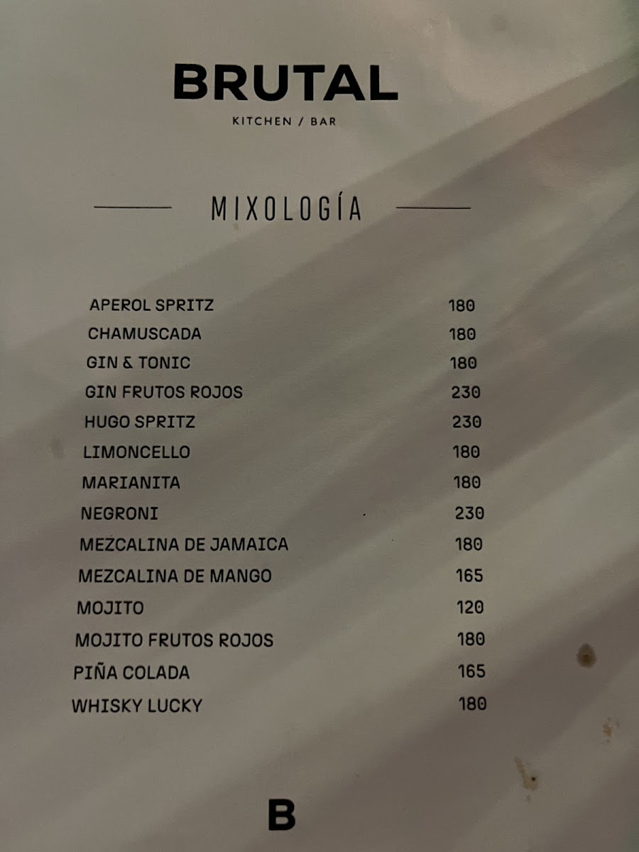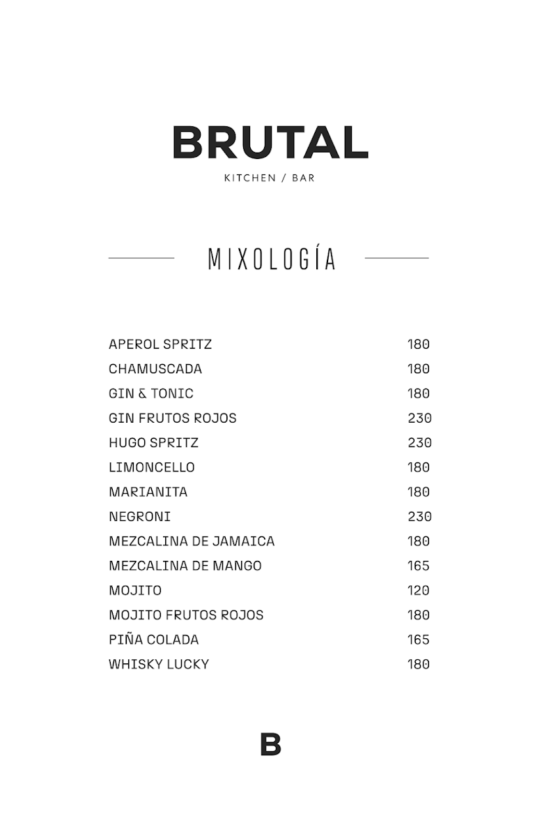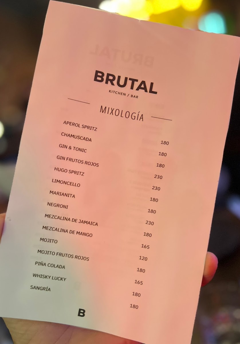 Brutal Kitchen Bar Menu