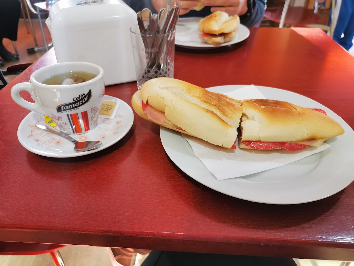 Familiar bar/café where locals go for a cup of morning coffee, something small to eat, drink chupito or even gamble a bit. The staff was very polite, they sort of forgot about one meals we ordered, but they realised it themselves and immediately apologised for it. The bathrooms were clean. The bocadillos tasted good and the prices were pretty reasonable.