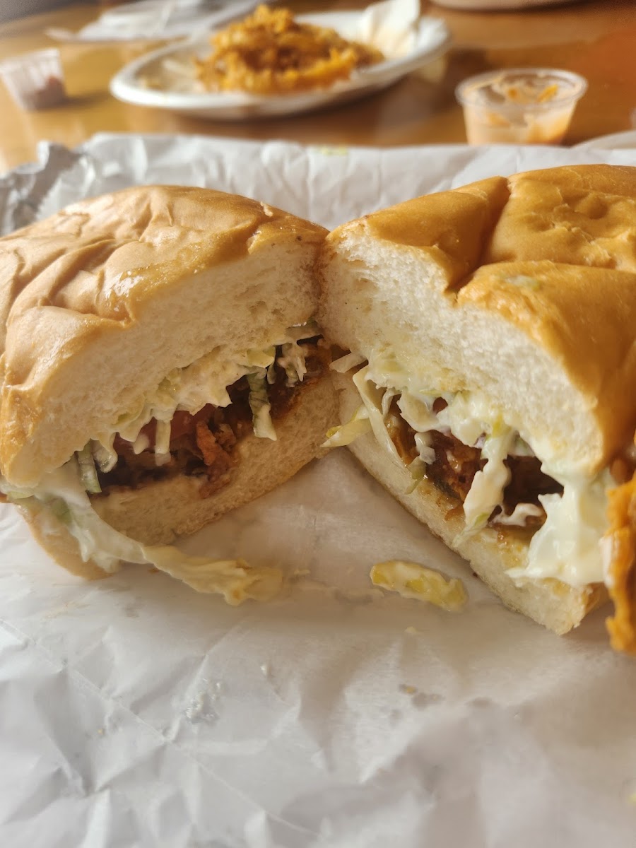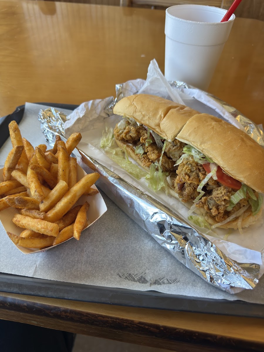 What a great place to grab a bite. Local? Yup. Fresh? Yup. Tasty? OH MY GOODNESS!!!! Everything we had was excellent. Softshell crab poboy! Crabby patty poboy! Fried chicken! And those onion rings!!! If you like onion rings. You have e to get their onion rings. If you are near this place you have to stop!!!
