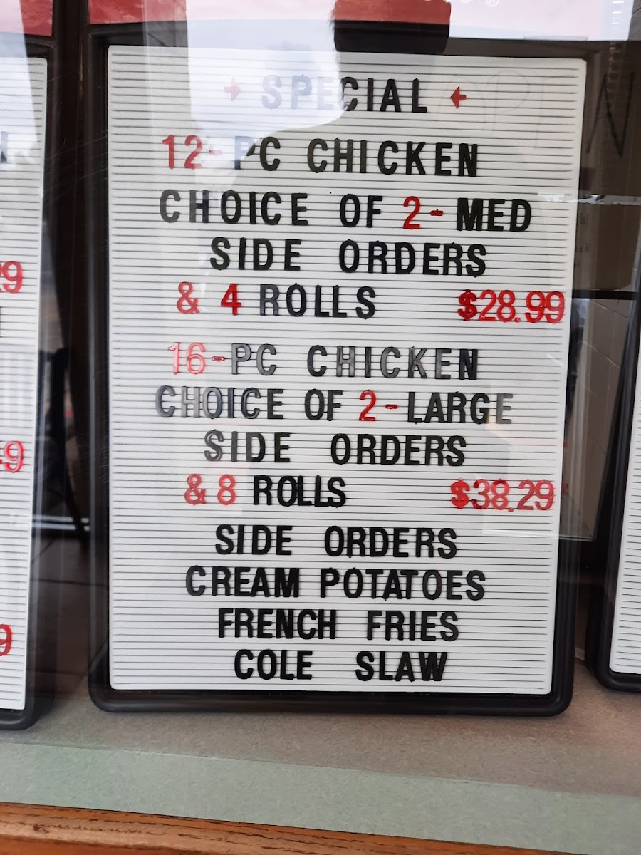 16-Pc Chicken Choice Of 2-Large Side Orders & 8 Rolls