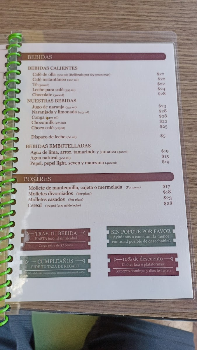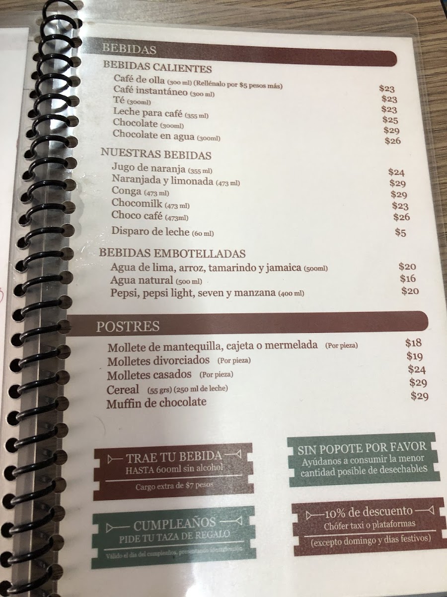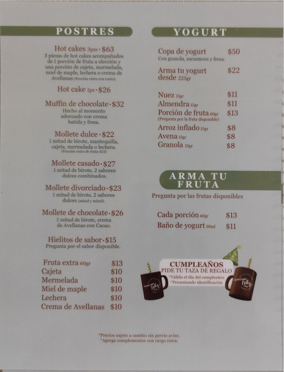 1 mitad de birote, mantequilla, cajeta, mermelada o lechera. (Porción extra de fruta $13)