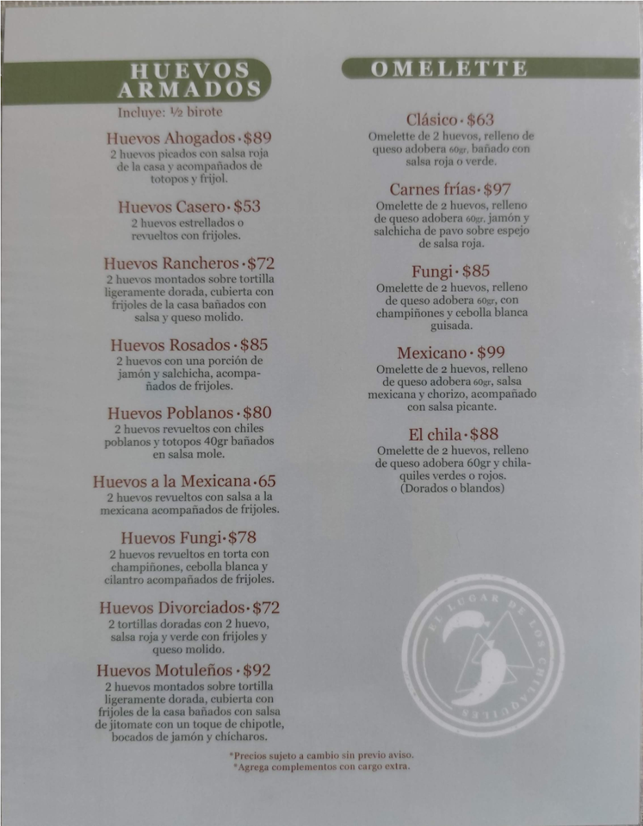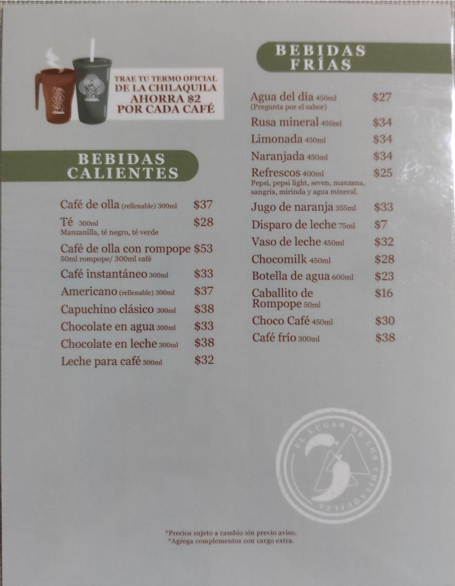 Chilaquiles; La Chilaquila Sucursal Constitución Menu