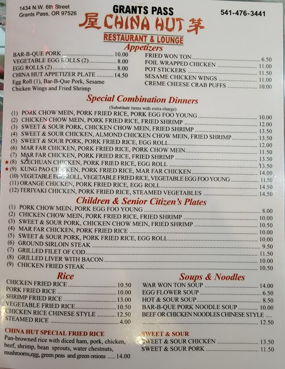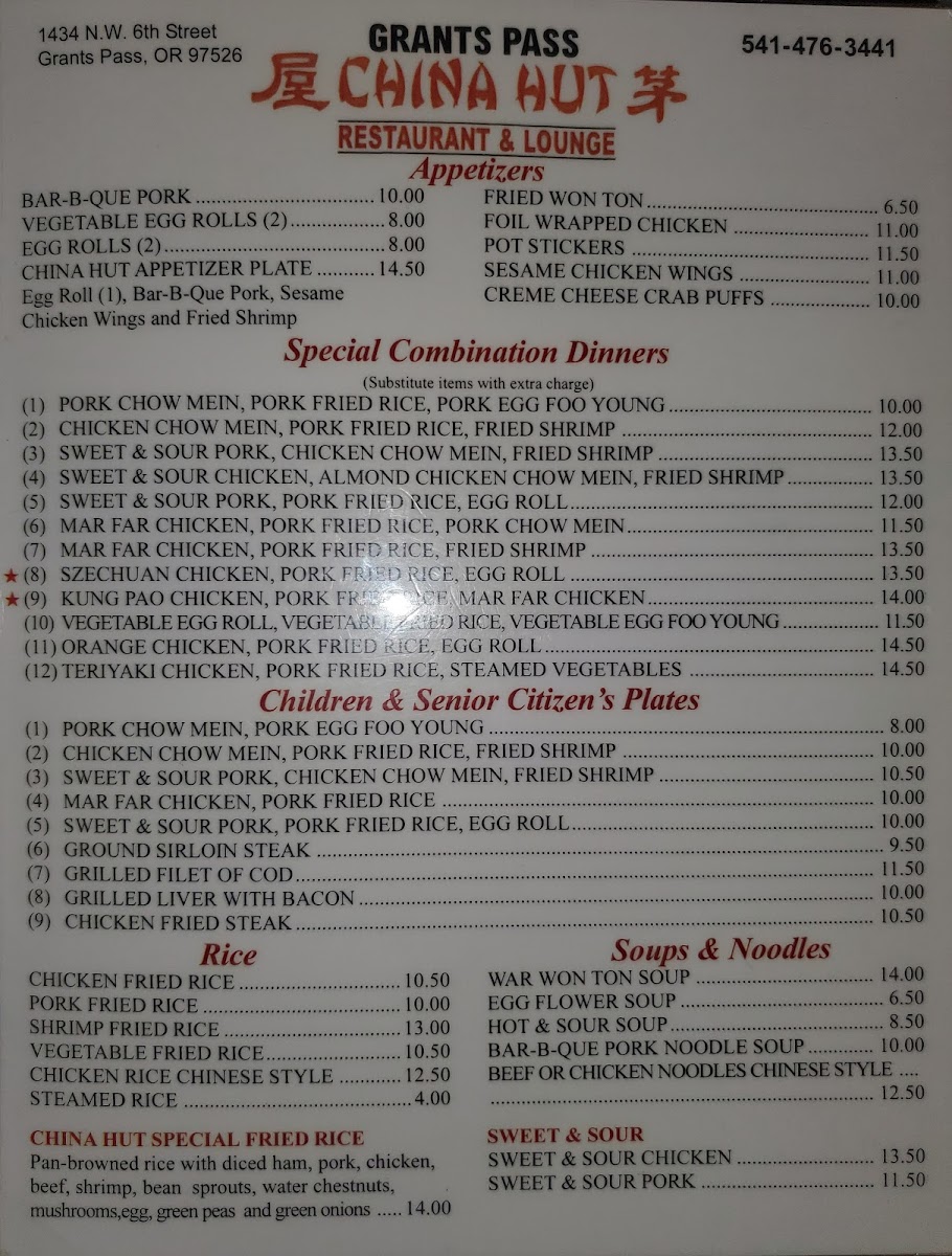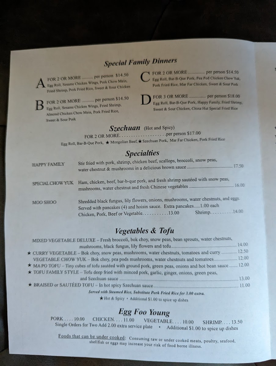 Pork Chow Mein, Pork Fried Rice, Pork Egg Foo Young
