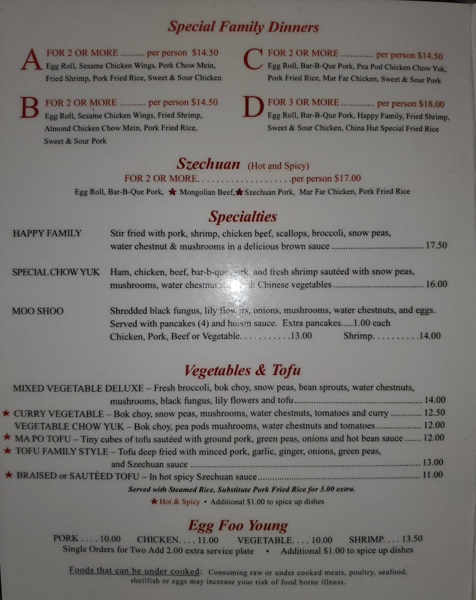 Mar Far Chicken, Pork Fried Rice, Pork Chow Mein