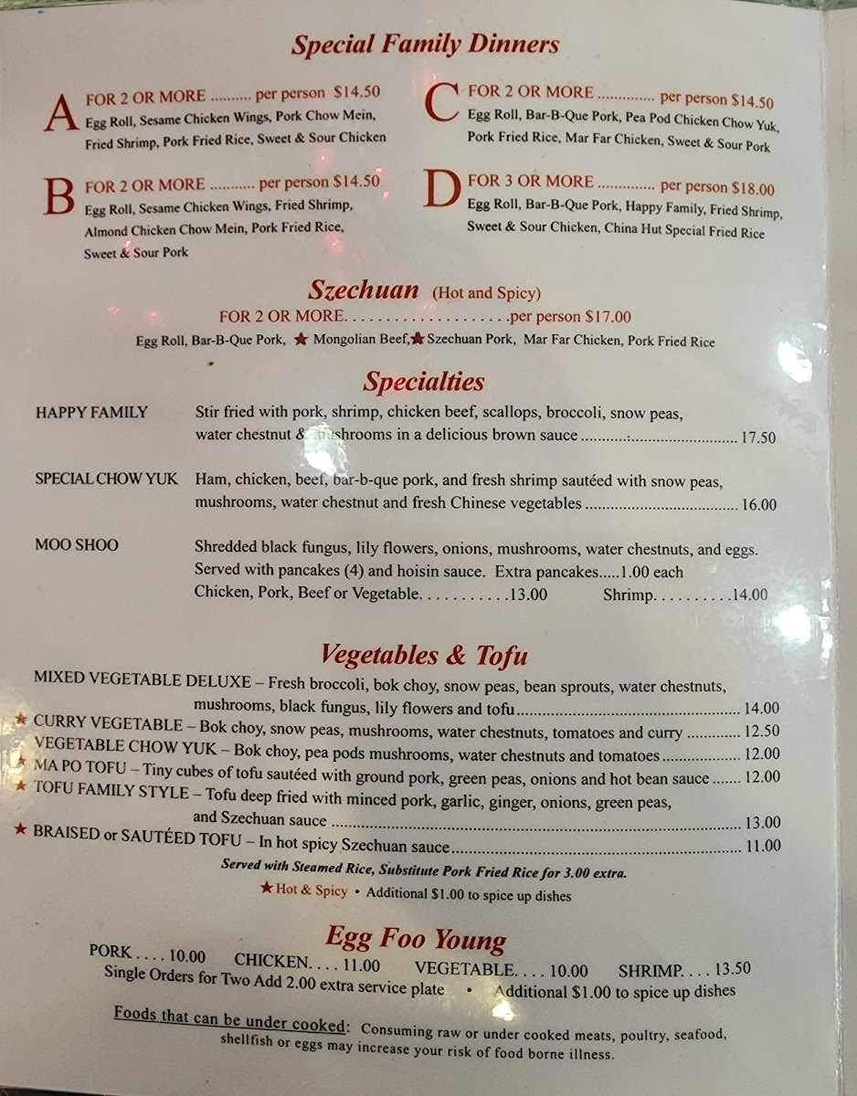 Vegetable Egg Roll, Vegetable Fried Rice, Vegetable Egg Foo Young