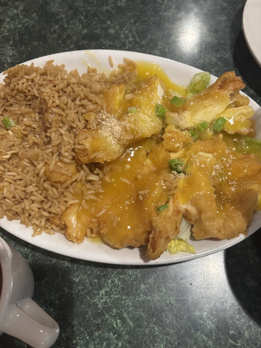 I love walking in and seeing the wishing well, with koi right at the front entrance. Food was hot and came out fast. Waitress was very polite, didn’t even write our order down, and got it right! Always love the almond chicken, today I tried the chicken chow mein and it was awesome. Not too busy.