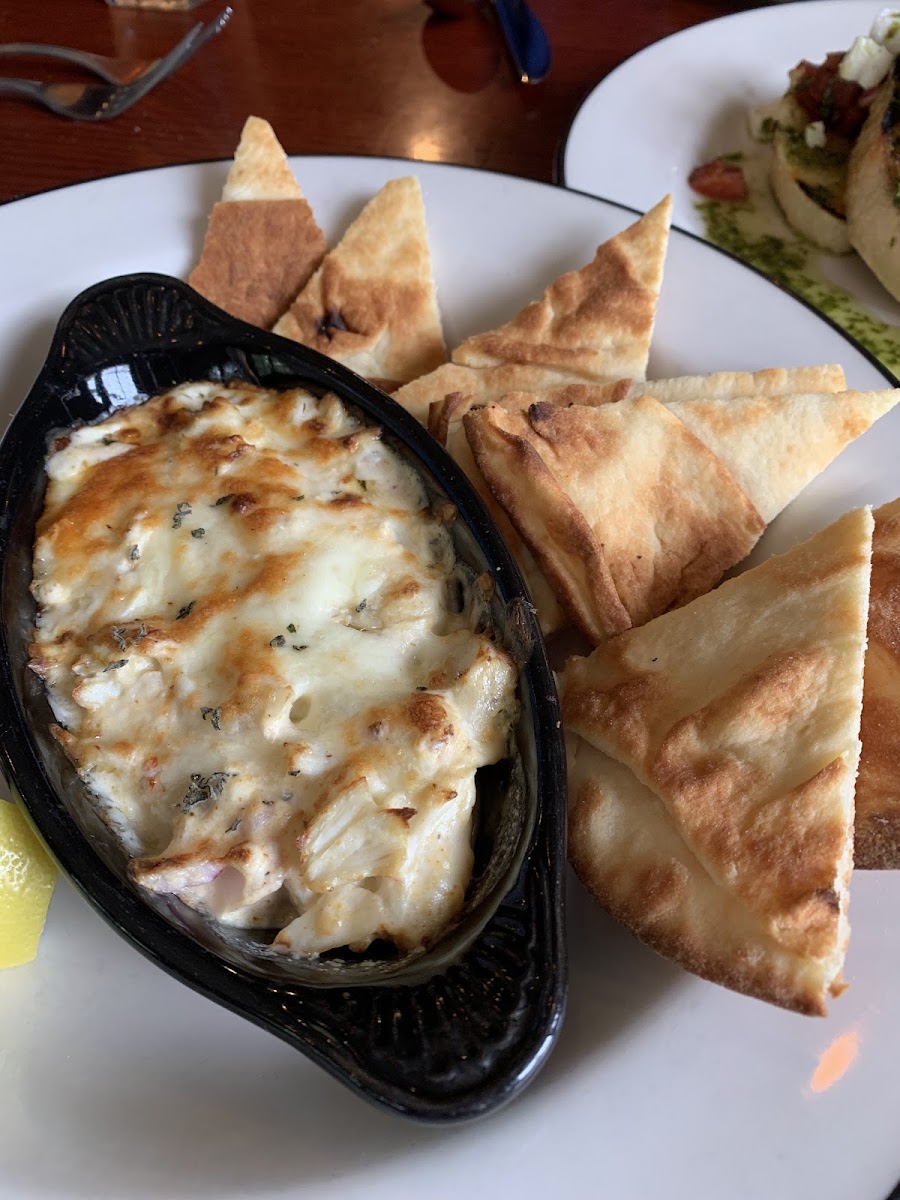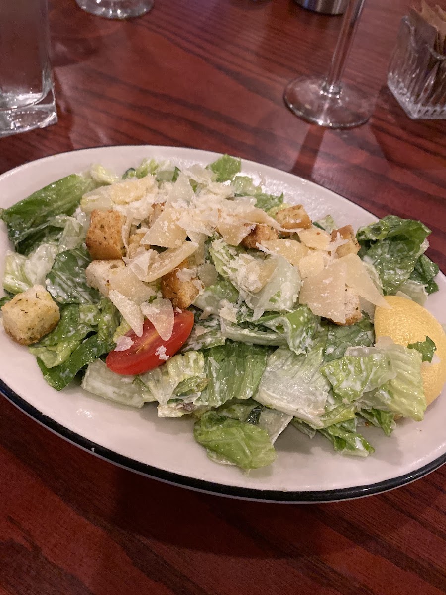 I had the chicken salad and it came with rolls. I couldnt finish the salad, it was a lot of food. I think I managed half. The blue crab bisque starter was creamy and delicious.