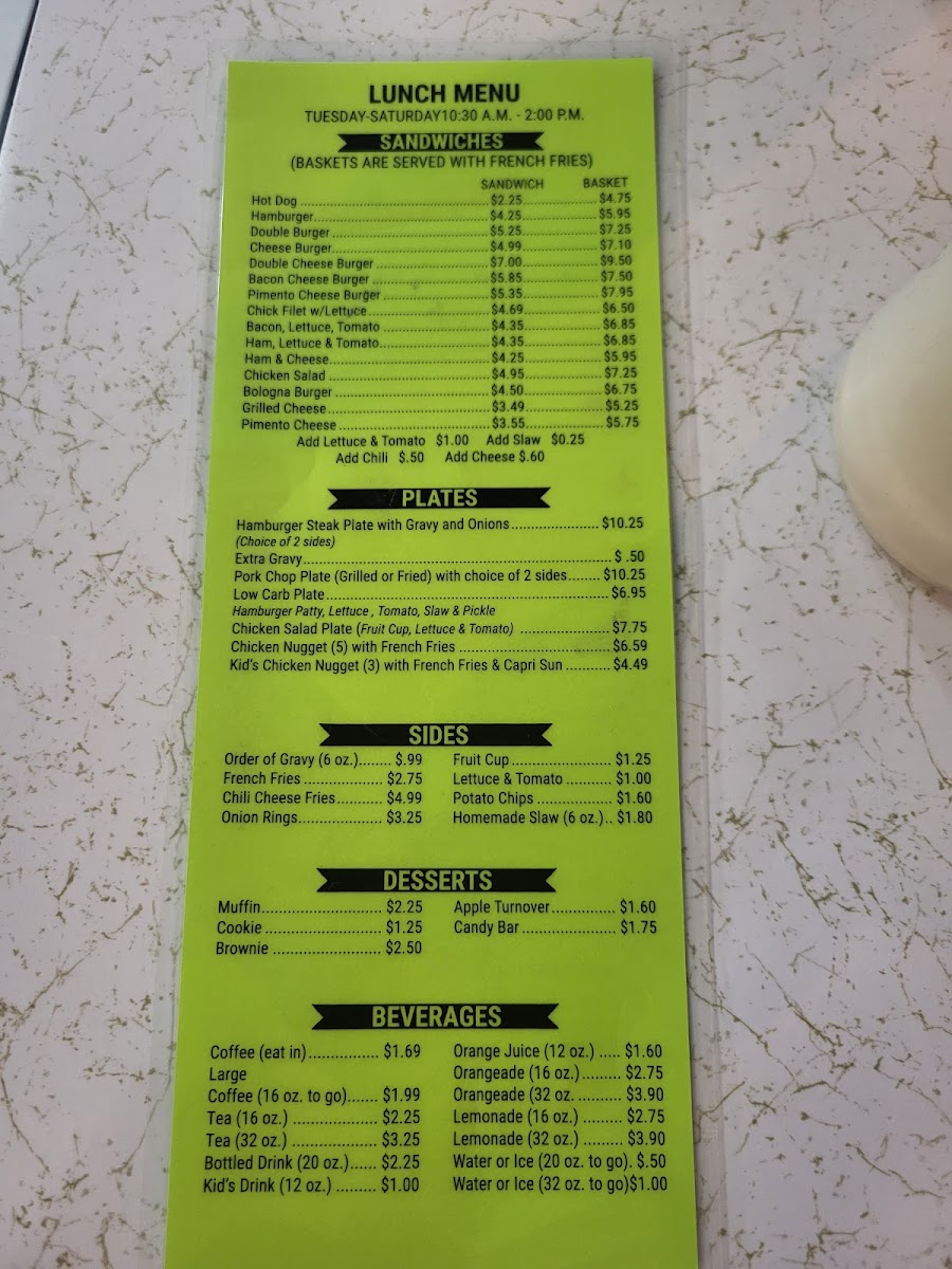 Cute little diner! Lovely wait staff! Limited food menu. No coffee past 10:30, but the sweet tea was a good alternative! Yum! Go for the burger, coleslaw, and onion rings! Or a chili cheese dog! I'll bet breakfast is right up there alley! 100% on their sanitation grade; can't beat that! Next time I come back I hope I have the same lovely, helpful waitresses and maybe add fried okra to the menu!!