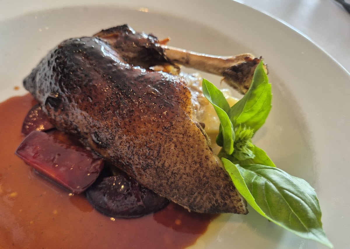 We enjoyed the atmosphere and because it was a quiet night it was easy to have conversations. Occasionally it was difficult to attract the attention of the wait staff but when they were in attendance they were very pleasant and helpful particularly with dietary requirements. Three of us ordered and loved the Slow Roasted Duck