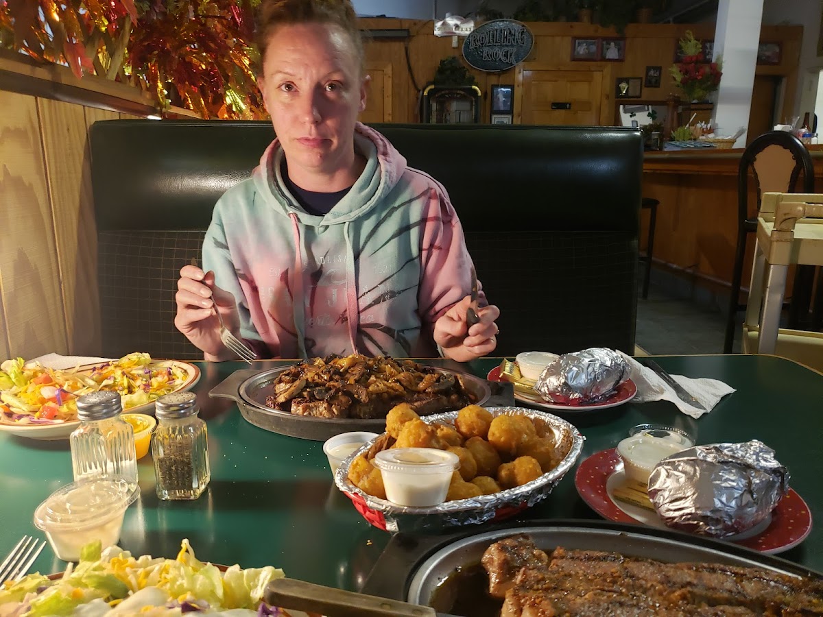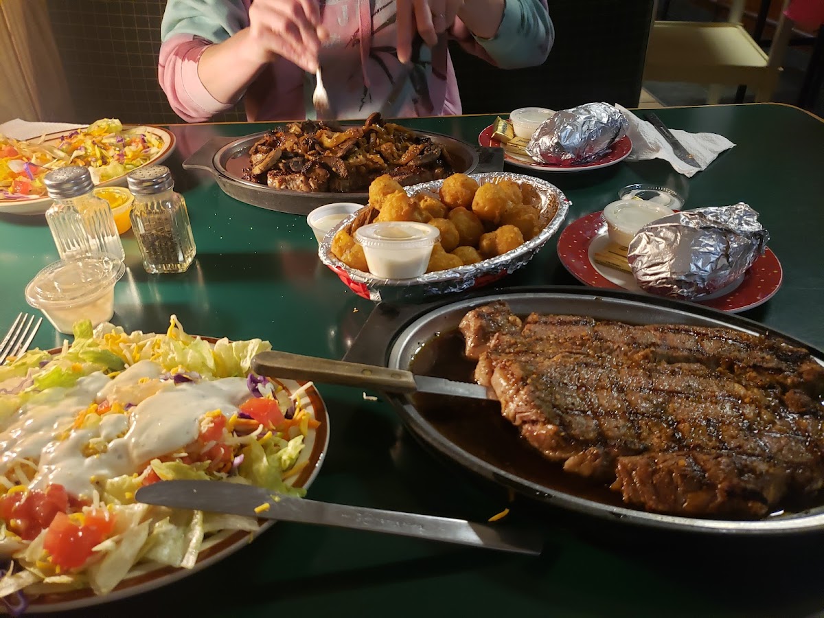 The place is a hidden gem of Bartonville, IL. We had to ribeye, porterhouse, with bake potatoes and side salad. For the appetizer, we had fried cauliflower.
