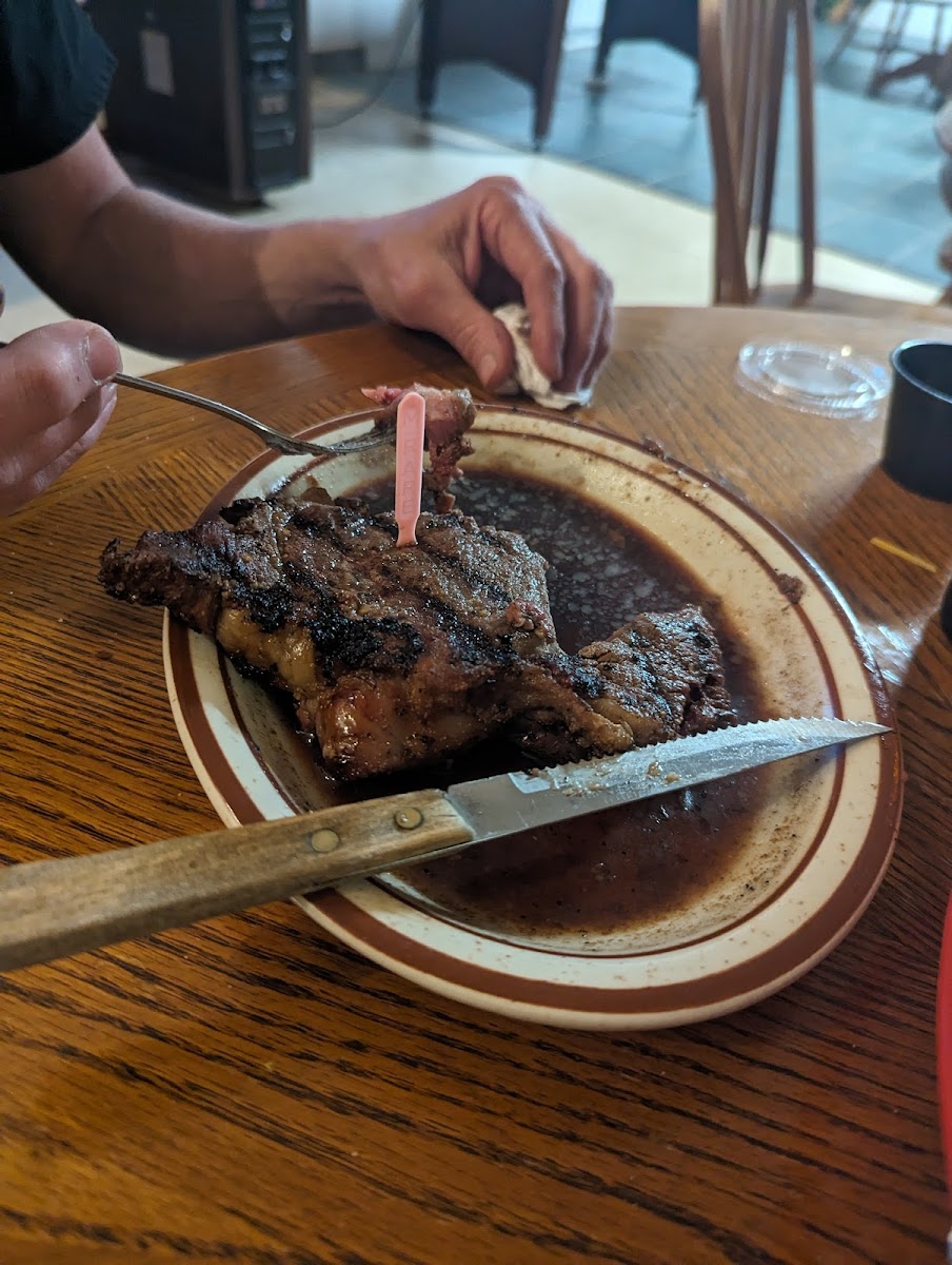 I would say this is one of the best steaks in the area. Very flavorful. Comes with side salad and potato. Only negative is hardvto figure out where to enter. I will return.