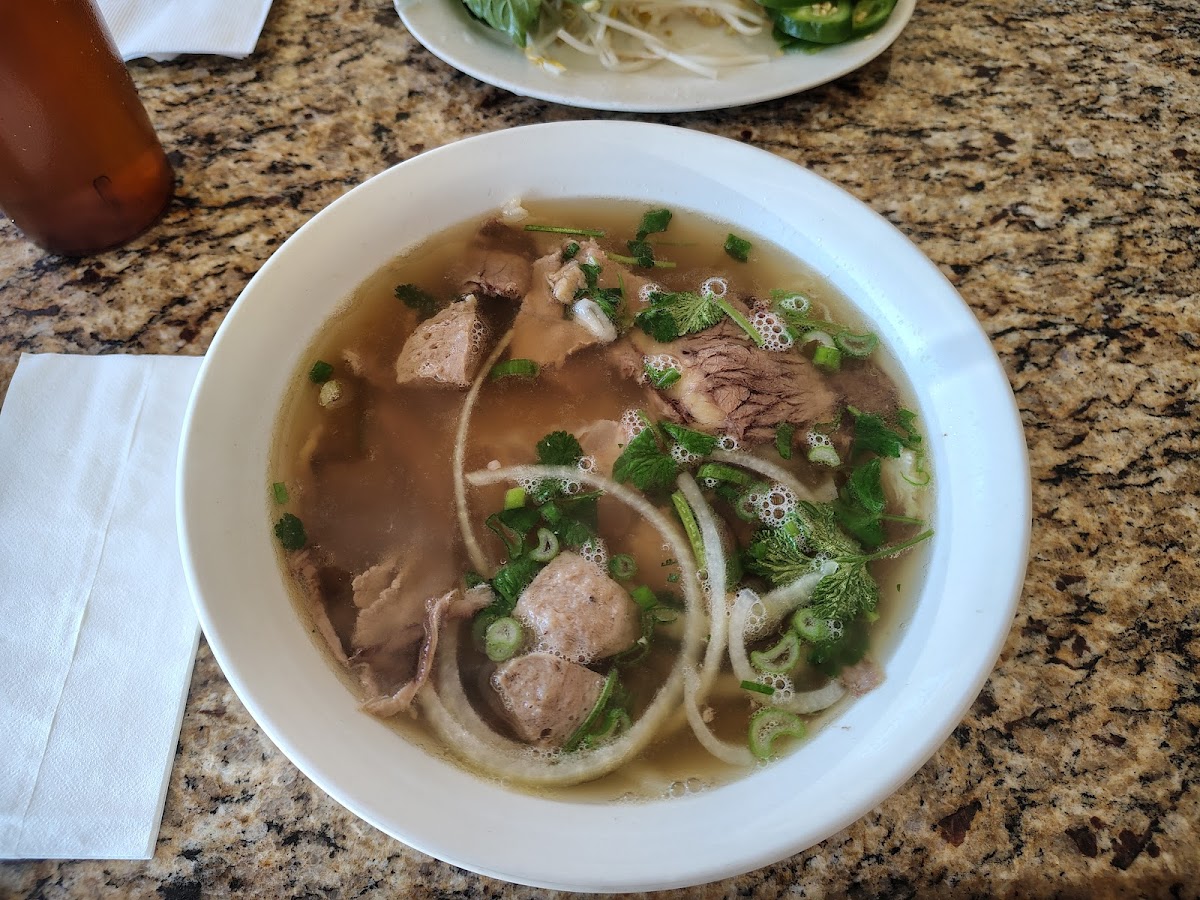 I walked in and immediately noticed that the crowd was mostly Asian - which made me smile, because if Asians are spending their time and money here it must be good. Out of the 40 people dining in, I was only the 2nd white guy in the whole place. I ordered the number 1 and the number 10, Beef Phô with meatballs and Shrimp Spring Rolls w/ peanut sauce. The table was cleaned as I sat down, so I knew it was clean, and even though I can eat with chop sticks, I don't like those plastic ladle like spoons so I asked for a regular spoon. The food was good! I ate most of it without any extra seasonings. But half way through I did add some fish sauce (which looks homemade) and Sriracha for some spice! The spring rolls were fresh and soft (the rice wrappers get hard and tough if they've been sitting out for too long) and the peanut sauce was on point! The portion of soup was so big I had to take the rest home. The ambiance is very basic, no frills - but there are a couple of flat screens. The waitress was very nice and my food came out in 10 minutes! Overall I was very pleased with this place and will have to try its name sake dish next time!