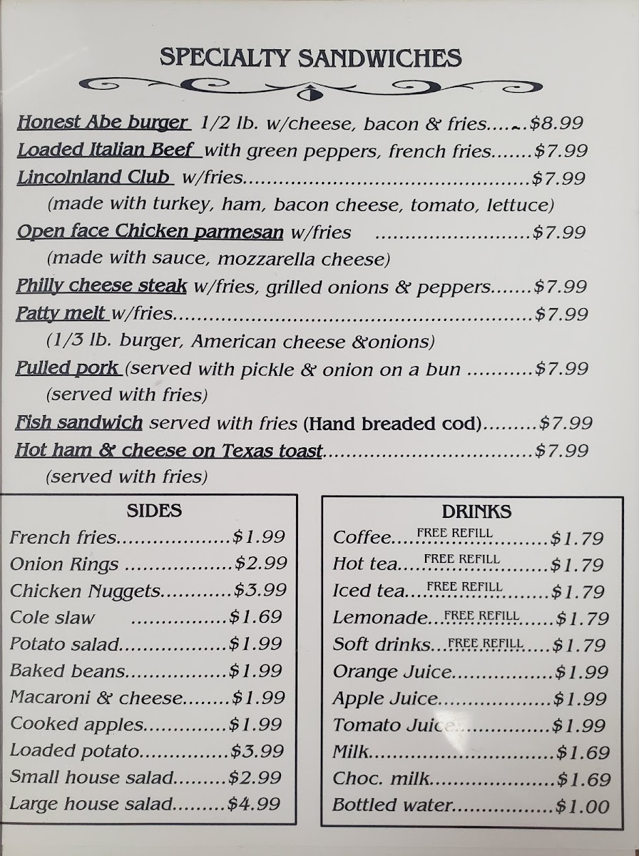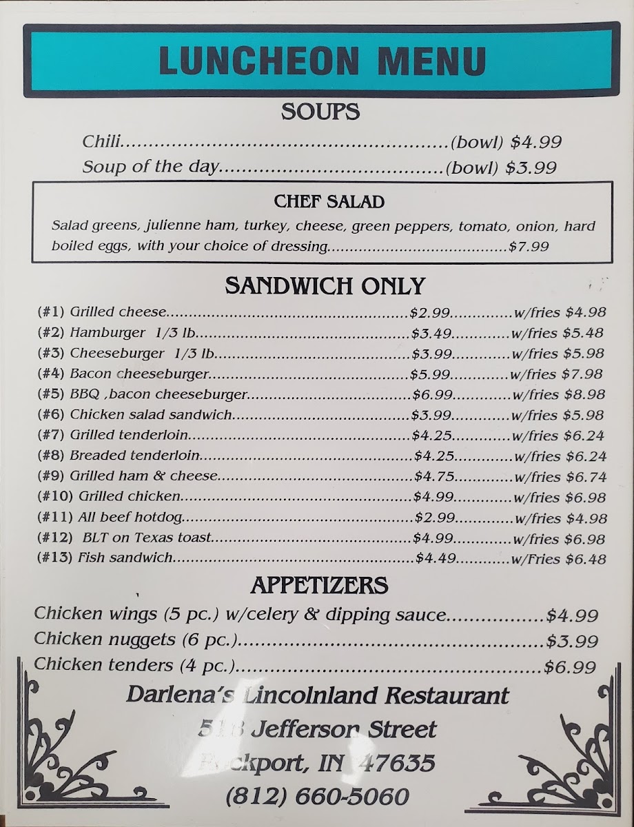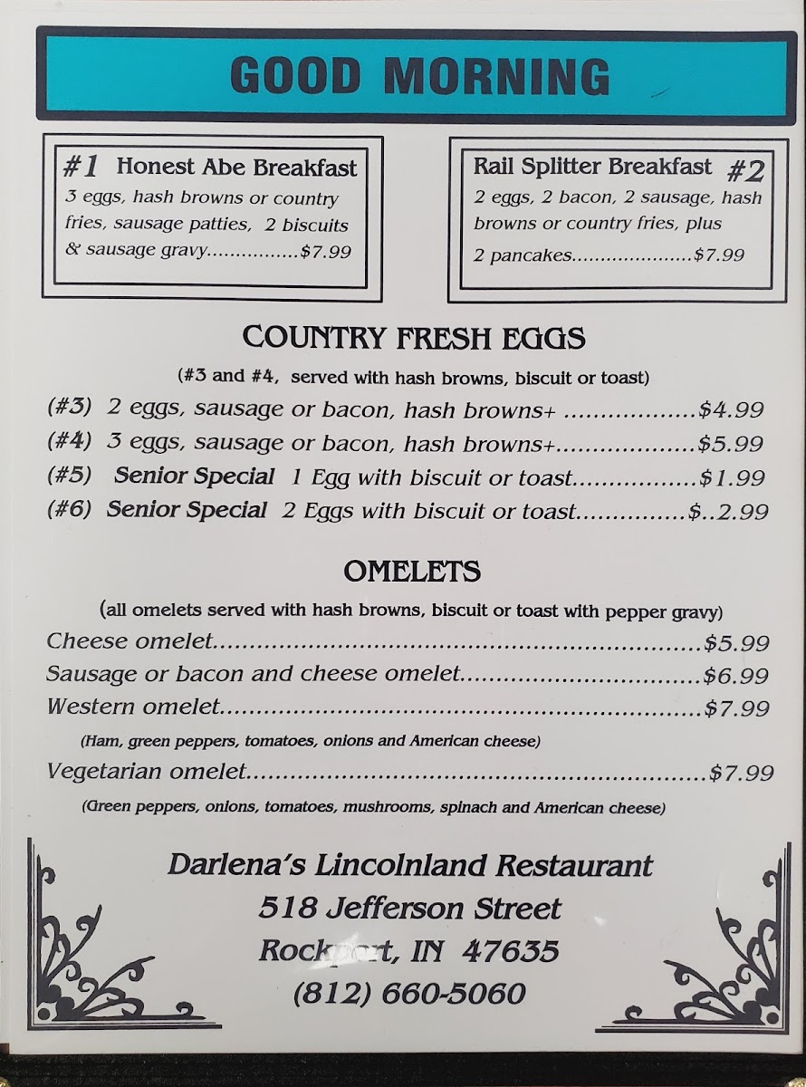 Darlena's Lincolnland Restaurant Menu