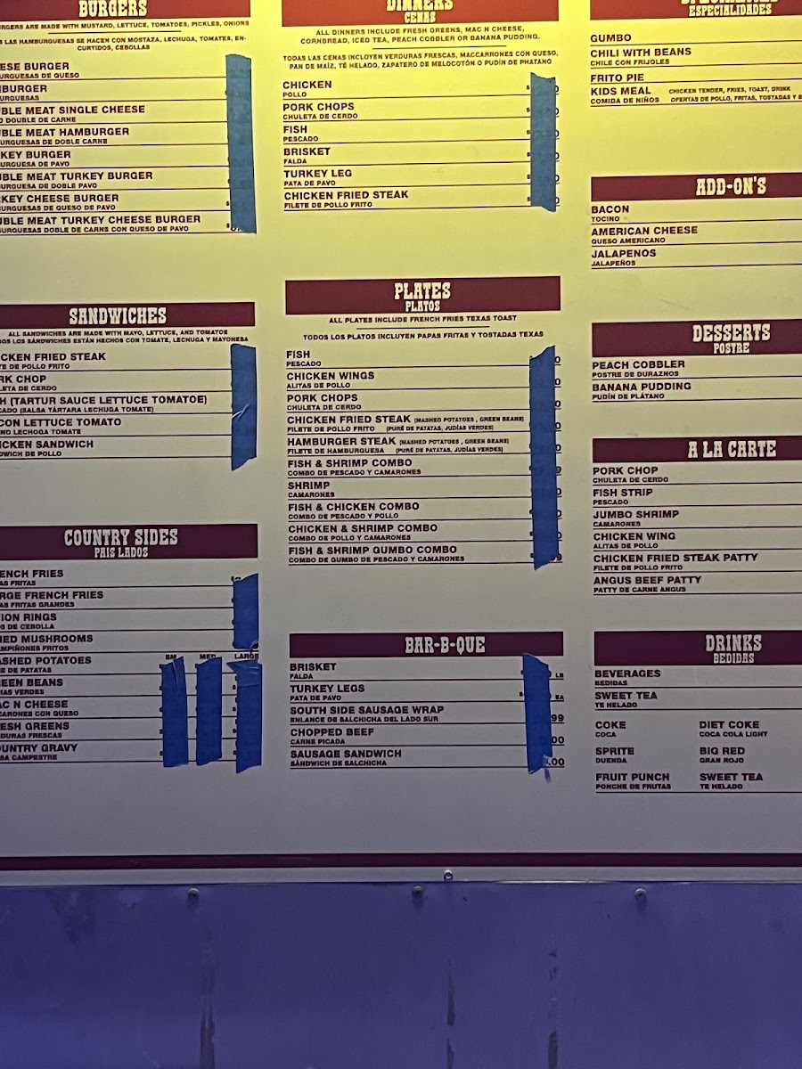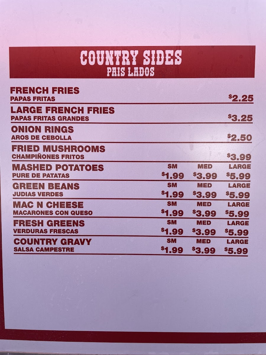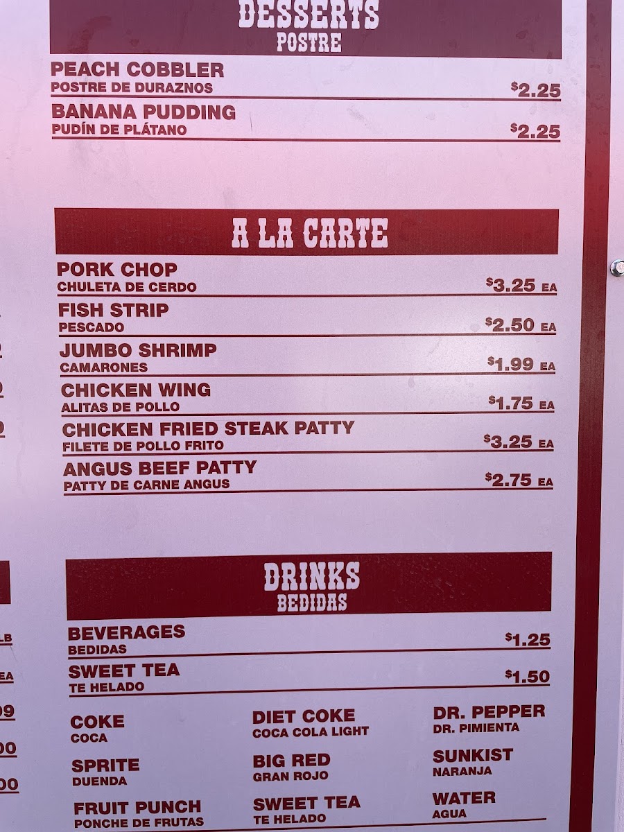 All dinners include 2 sides Cornbread Dessert Iced Tea