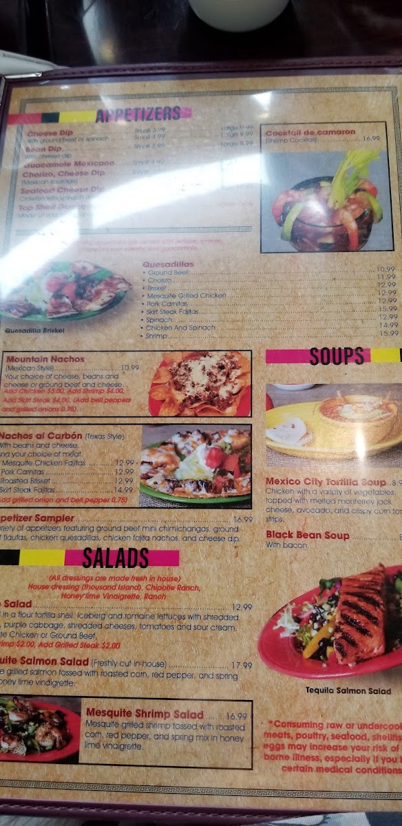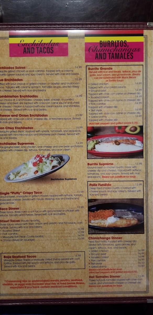 Texas style with beans and cheese and your choice of meat. Add-ons for an extra charge.