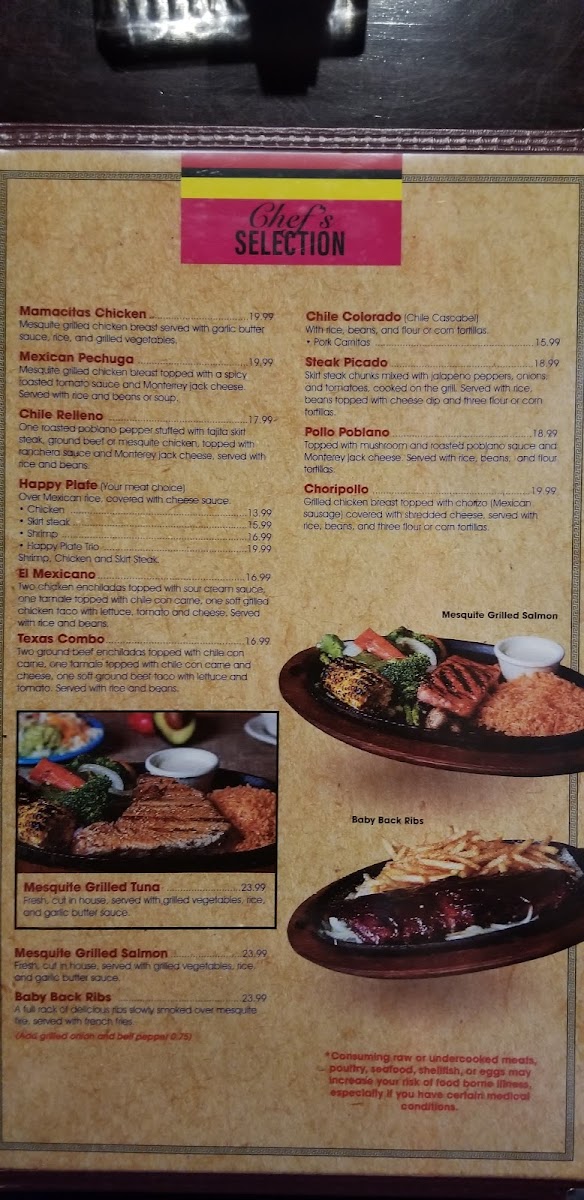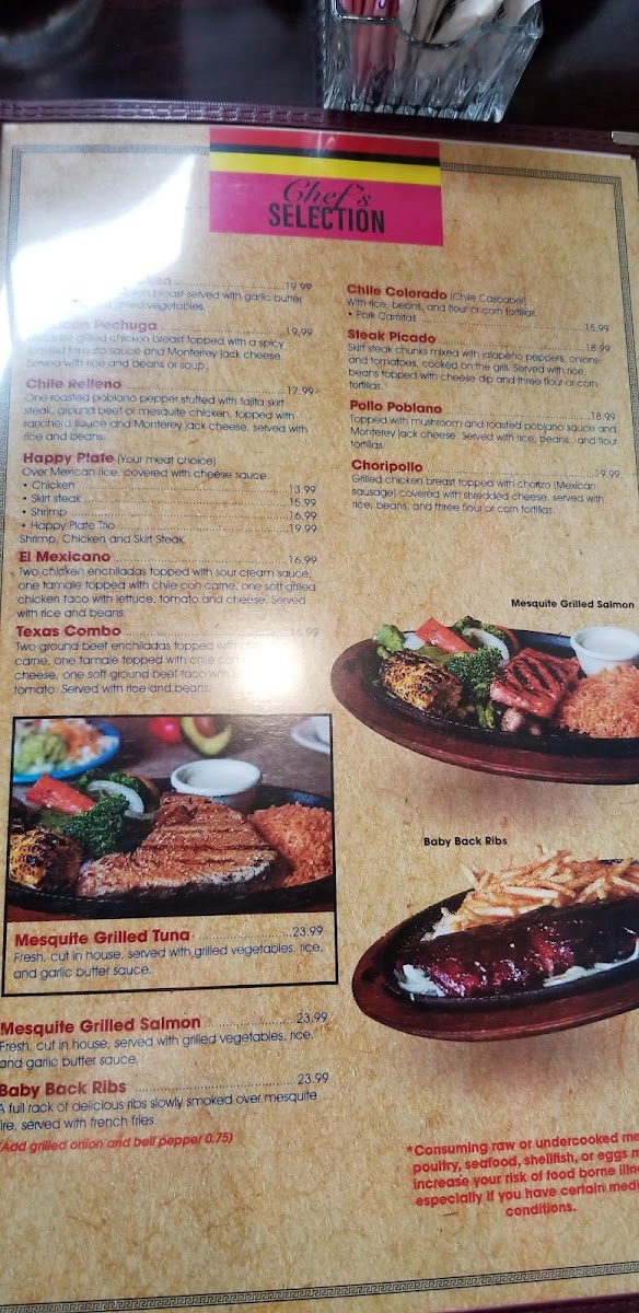 1 roasted poblano pepper stuffed with fajita skirt steak, ground beef or mesquite grilled chicken, topped with ranchera sauce and Monterey Jack cheese, served with rice and beans.