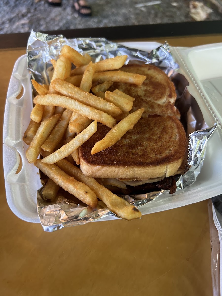 1st time here, will be back! Generous portions, yummy food, quick friendly service. indoor and outdoor seating. We opted for outdoor next to the river. This sandwich was enough for 2 meals.