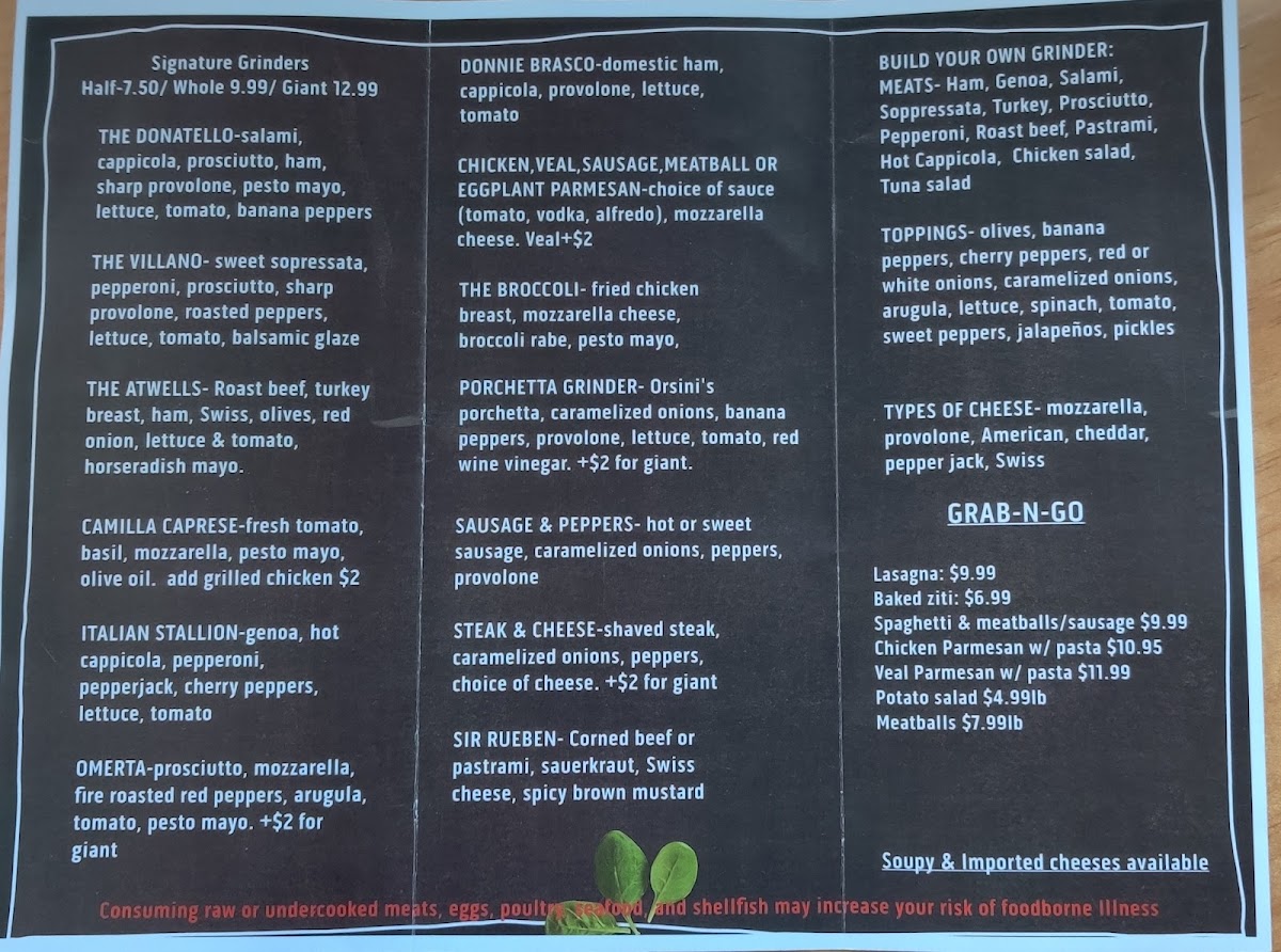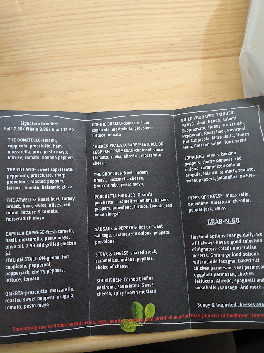 Turkey, feta, olives, onions, vinegar, oil, lettuce, tomato, provolone.