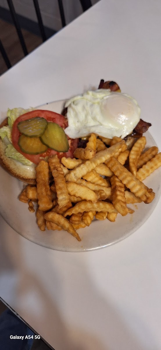 Great home town spot. Friendly staff. Our waitress was kind and treated us as if she knew us for years. The food was great! Orders came out quick and correct. Burgers are great here. My friend had the pork chops and they were delicious. Pricing is great too. Limited seating inside. Seat yourself when you come in. Free parking lot and a good amount of parking available.