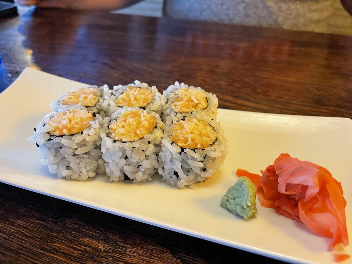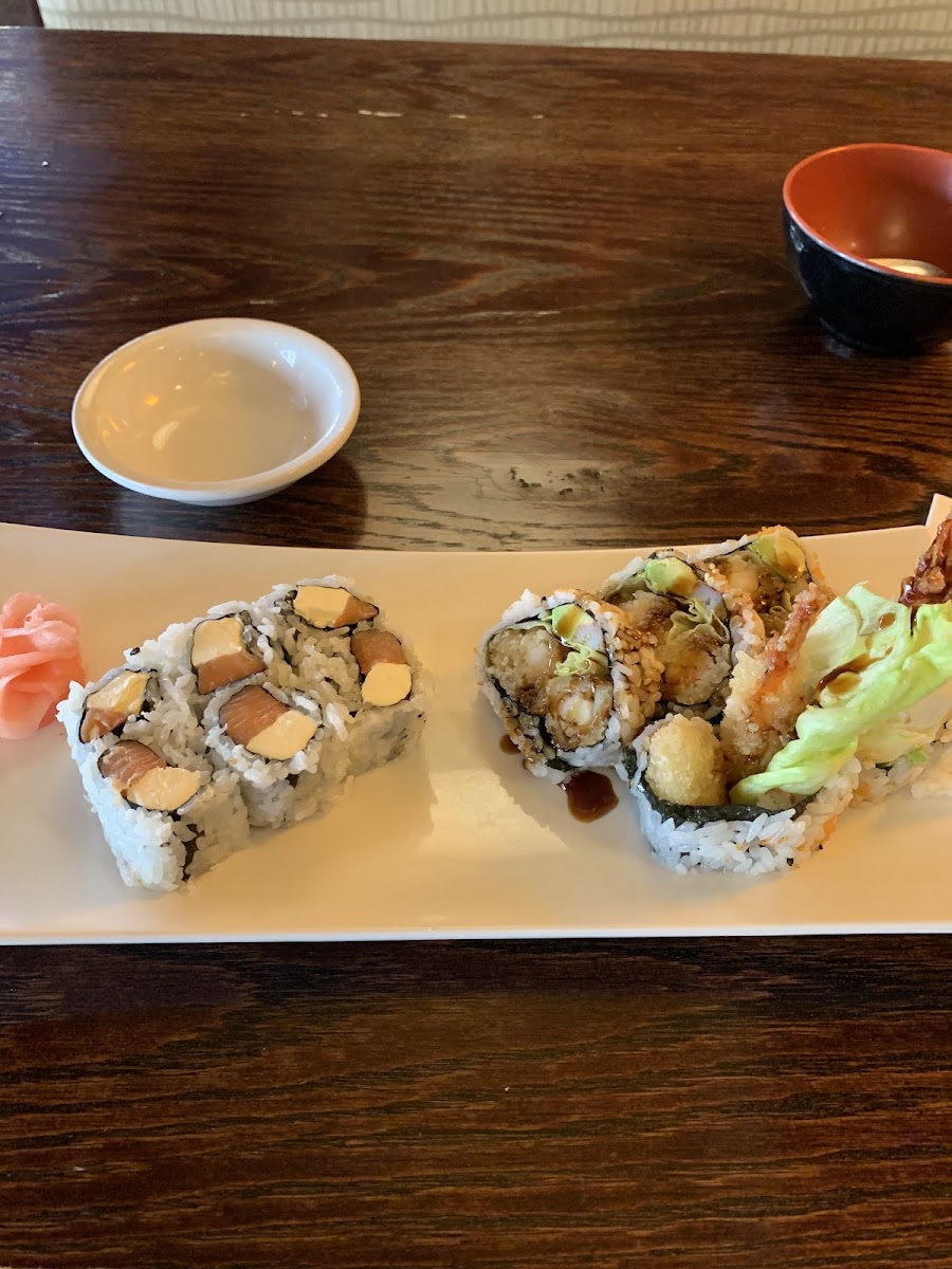 We went right before close. The place was quiet, extremely clean. The food was very good and hot! I got the dragon roll and the crazy roll. Crab Rangoon and my husband got general tso