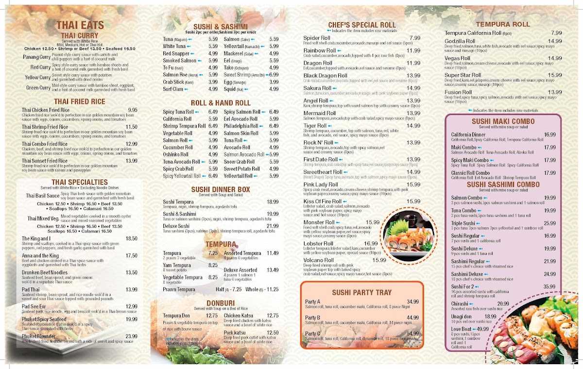 California roll, eel avocado roll, and tempura roll