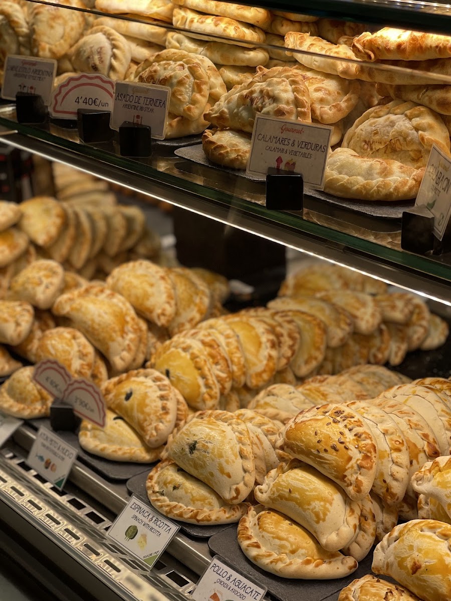 Las mejores empanadas que comí en Madrid. Todas están deliciosas, pero a mí me gustan mucho las de carne. Sin embargo hay muchas opciones para probar
