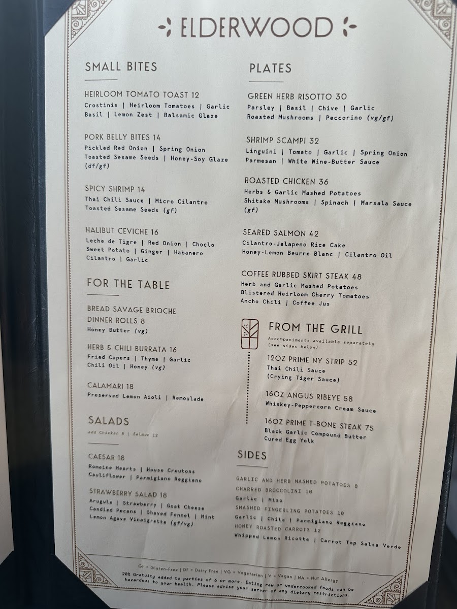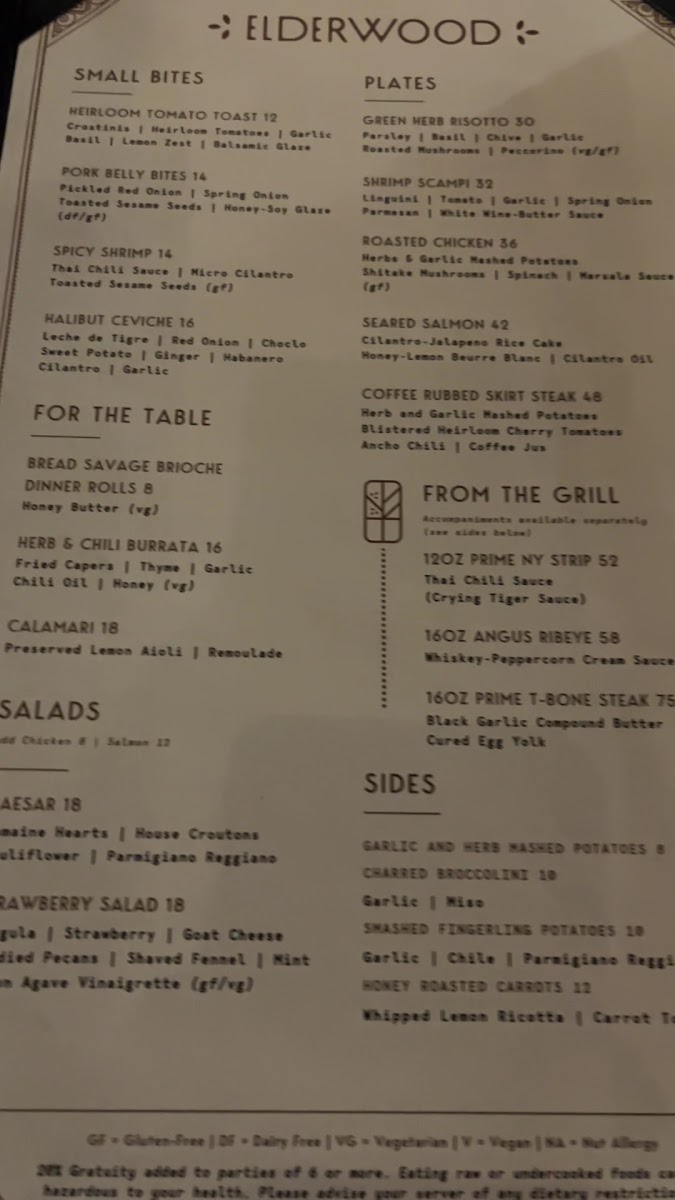 Check out our dinner menu at elderwoodvisalia.com/dinner for more dinner & drink menu selections!