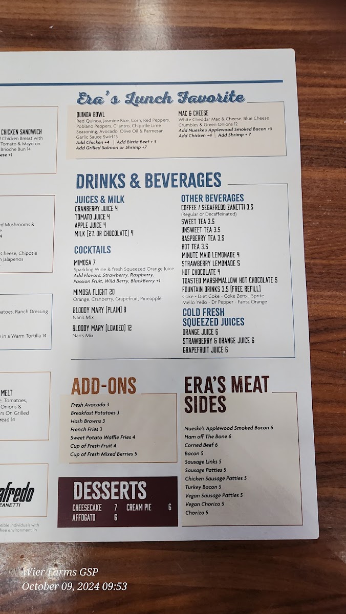 Toasted English muffin, ham off the bone, two cage-free poached eggs topped with homemade hollandaise