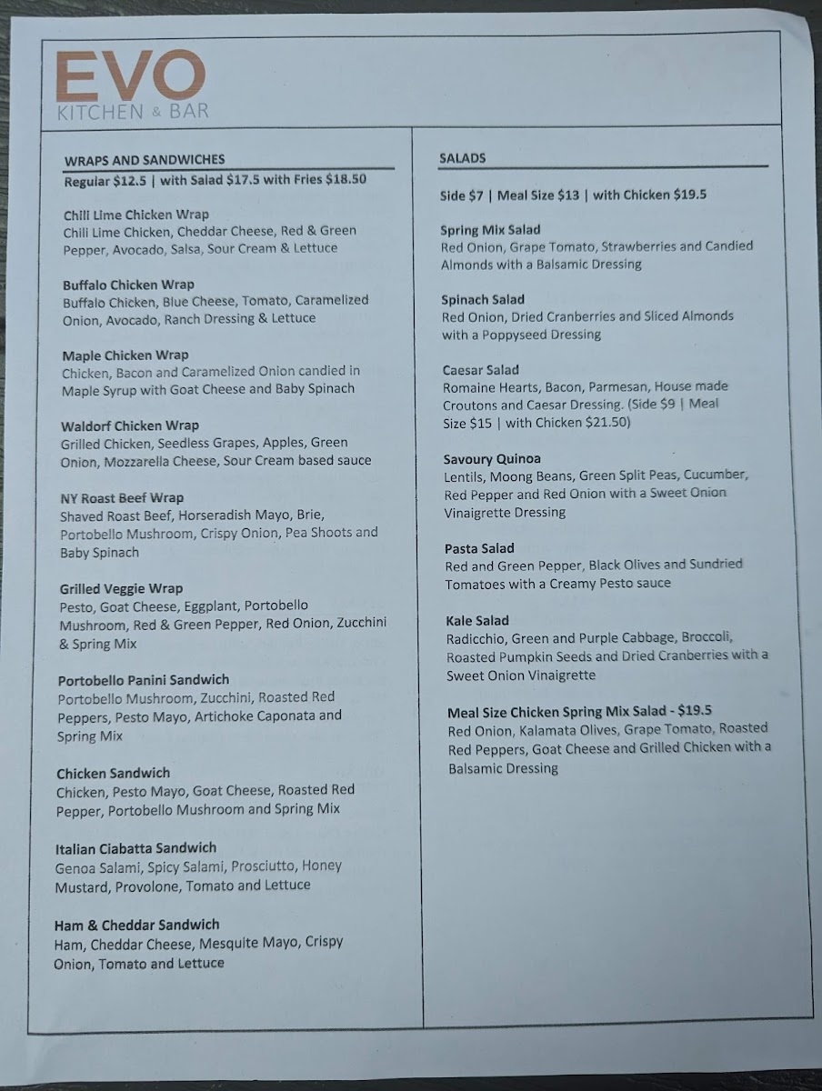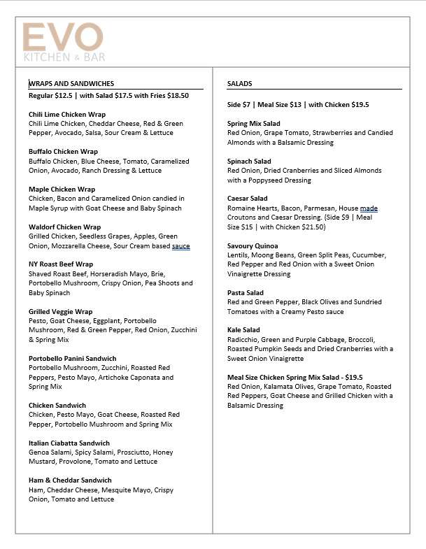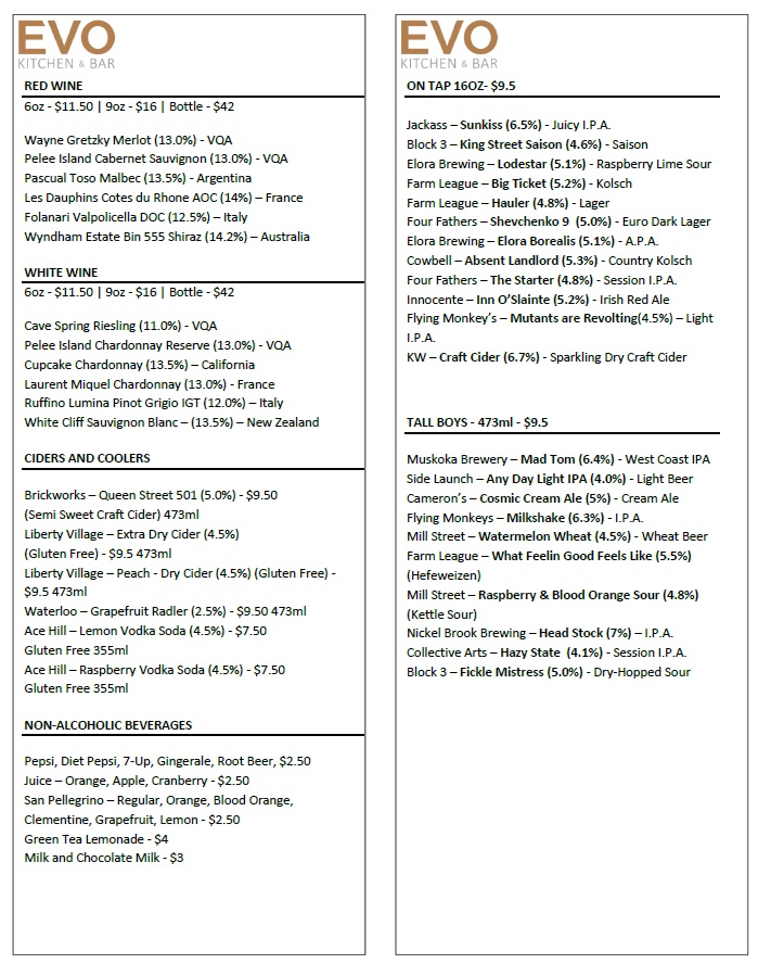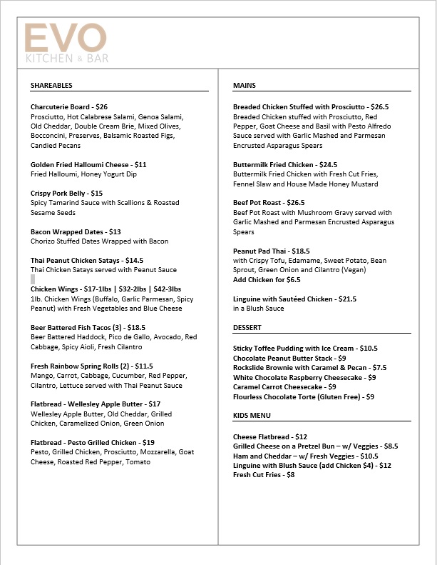 Evo Kitchen & Bar Menu