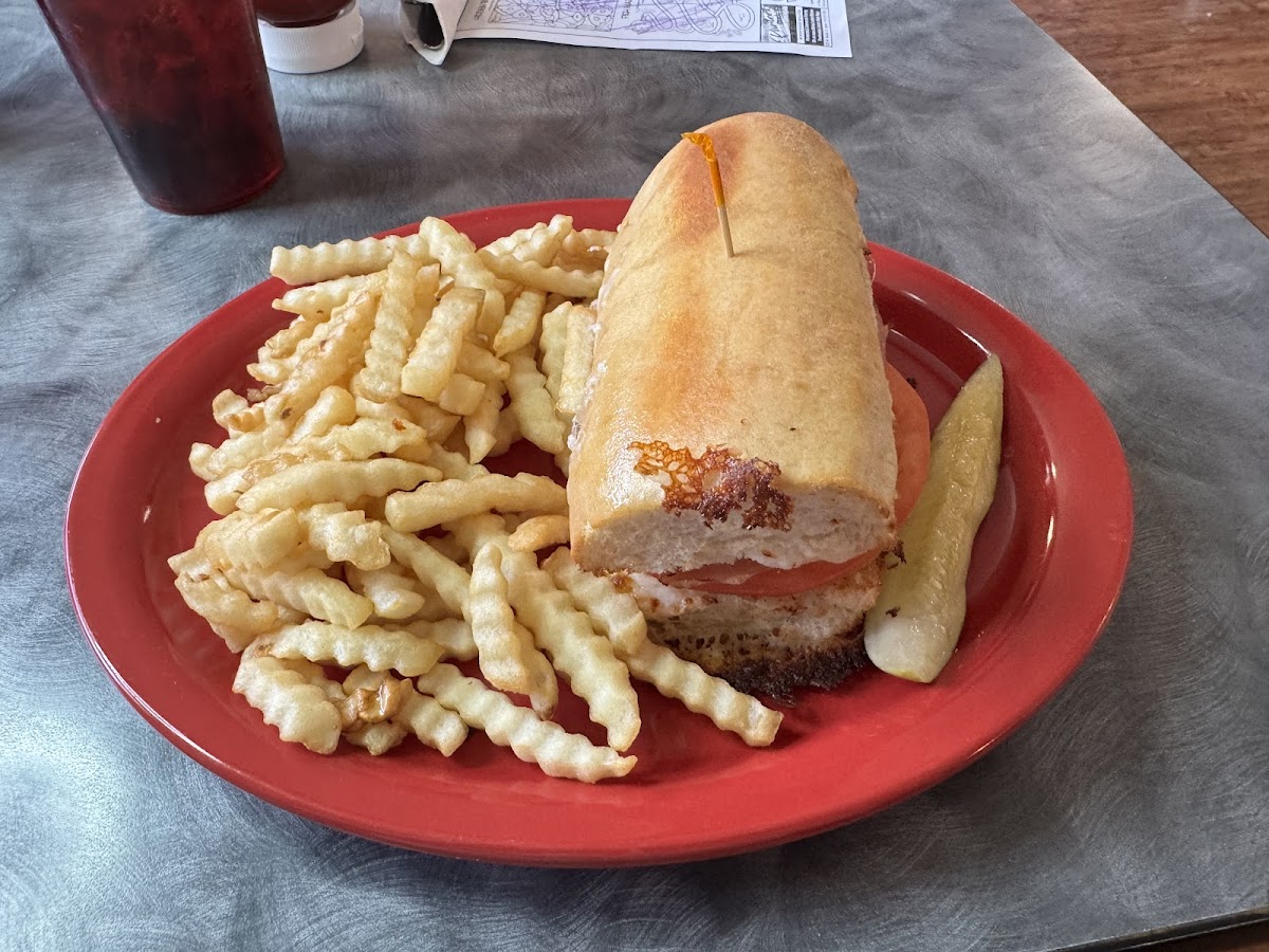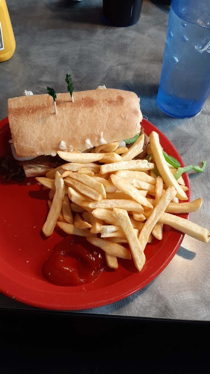 Friendly neighborhood atmosphere. Good food, I love the whitefish! Quick! Offer some alcoholic beverages if you are so inclined. Very affordable.