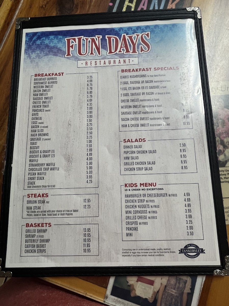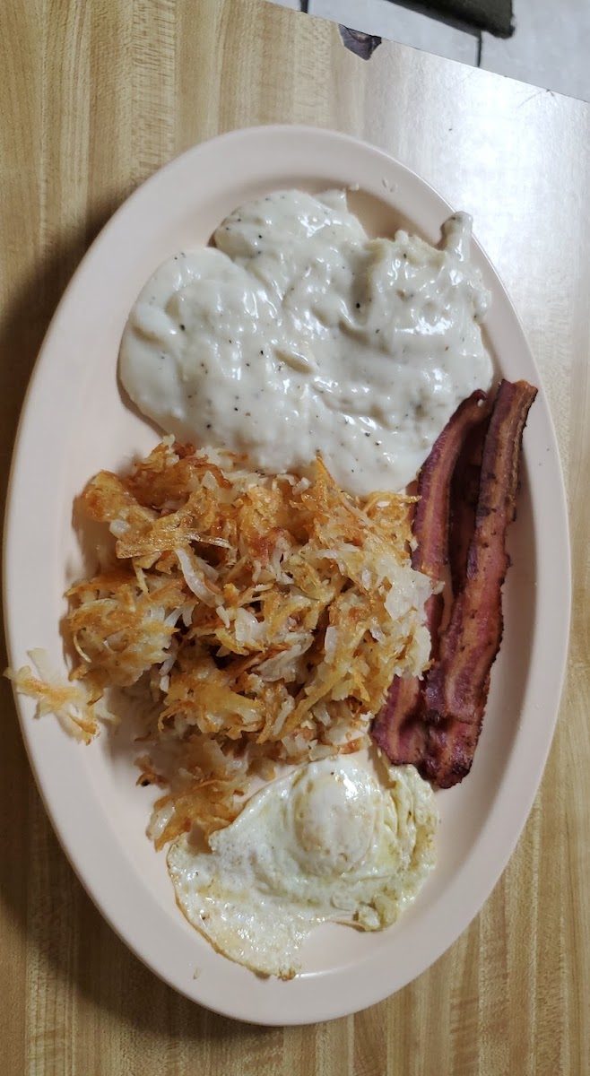 This is your go-to mom-n-pops down home country restaurant. Hashbrowns are still made with real potatoes. The breakfast omelets are amazing. The 8pc. fried fish is amazing as well. All the good Ole Boys from around town gather there at their table to set an talk about the weather. Great atmosphere! Highly recommend y'all. Ps. Don't forget to ask about their pie slices. Amazing pie