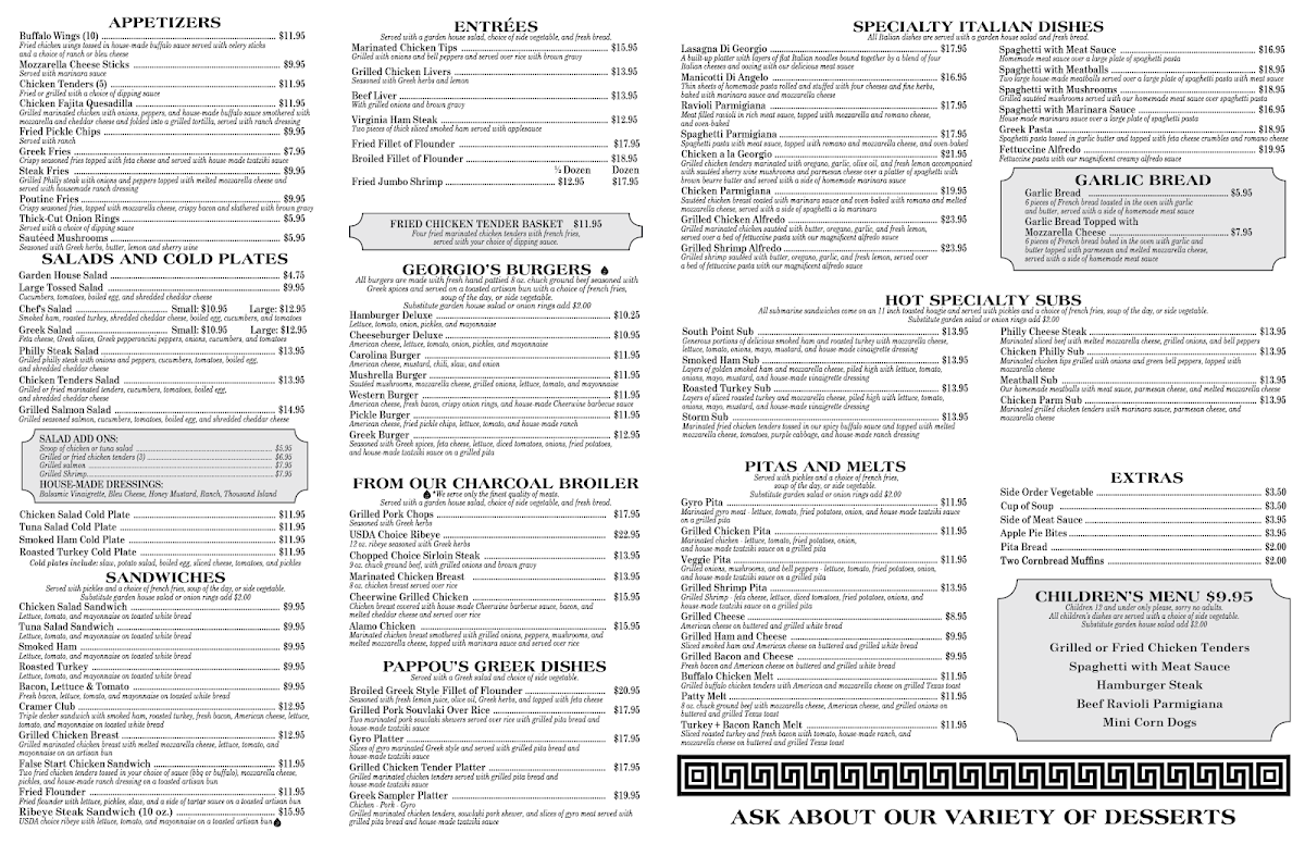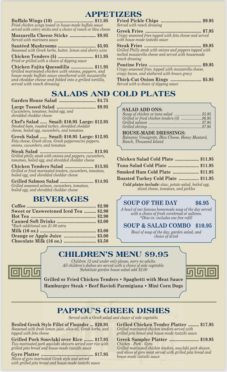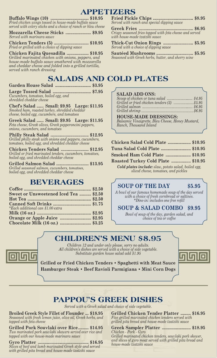 Chicken, Pork, Gyro • Grilled marinated chicken tenders, souvlaki pork skewer, and slices of gyro meat served with grilled pita bread and house-made tzatziki sauce.