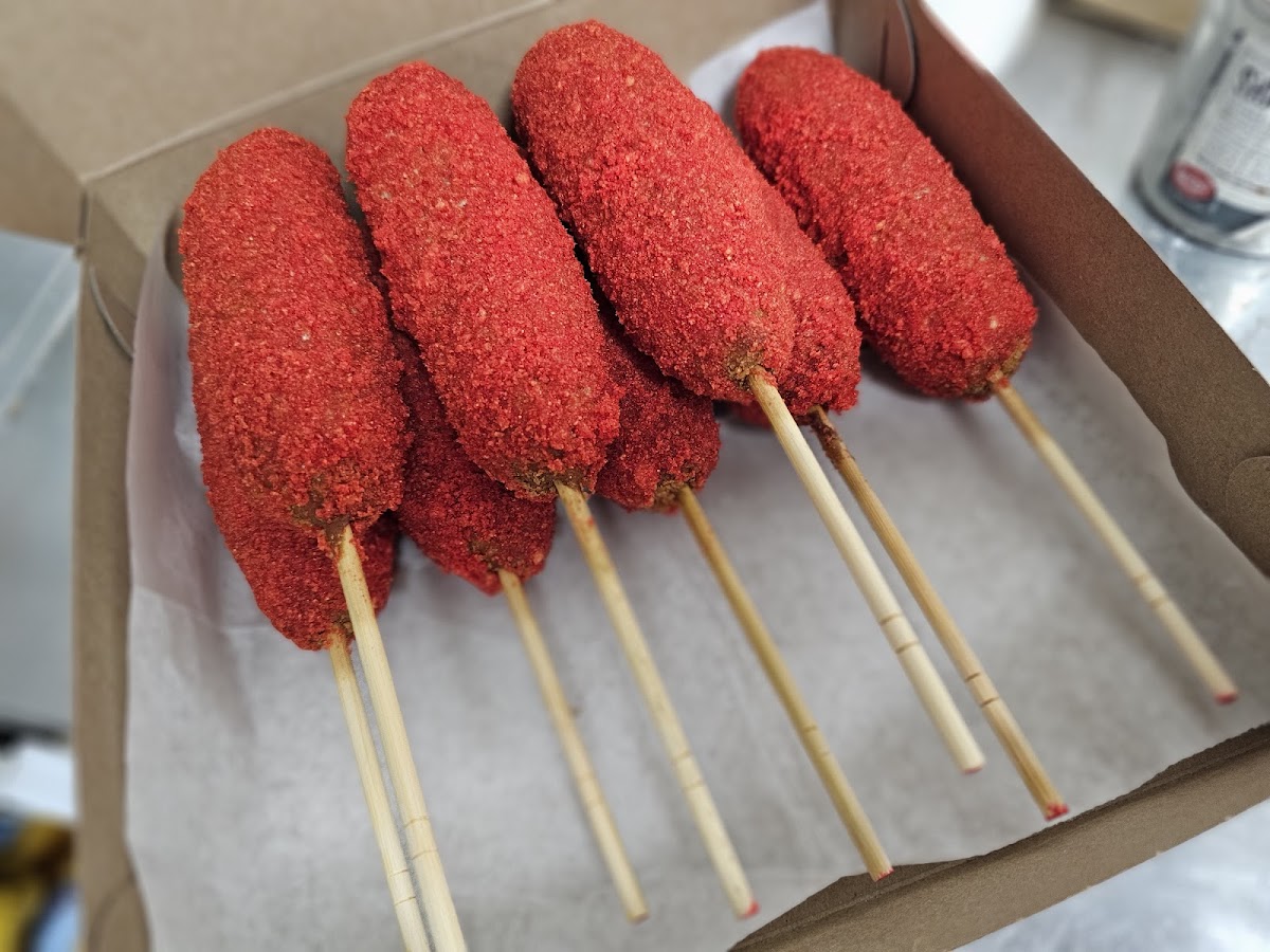 Ordered 4 of the hot Cheetos corn dog and loved how much hot Cheeto crumbs there were. Food was great and the customer service was okay the prices for a can soda was extremely high. But overall a great experience