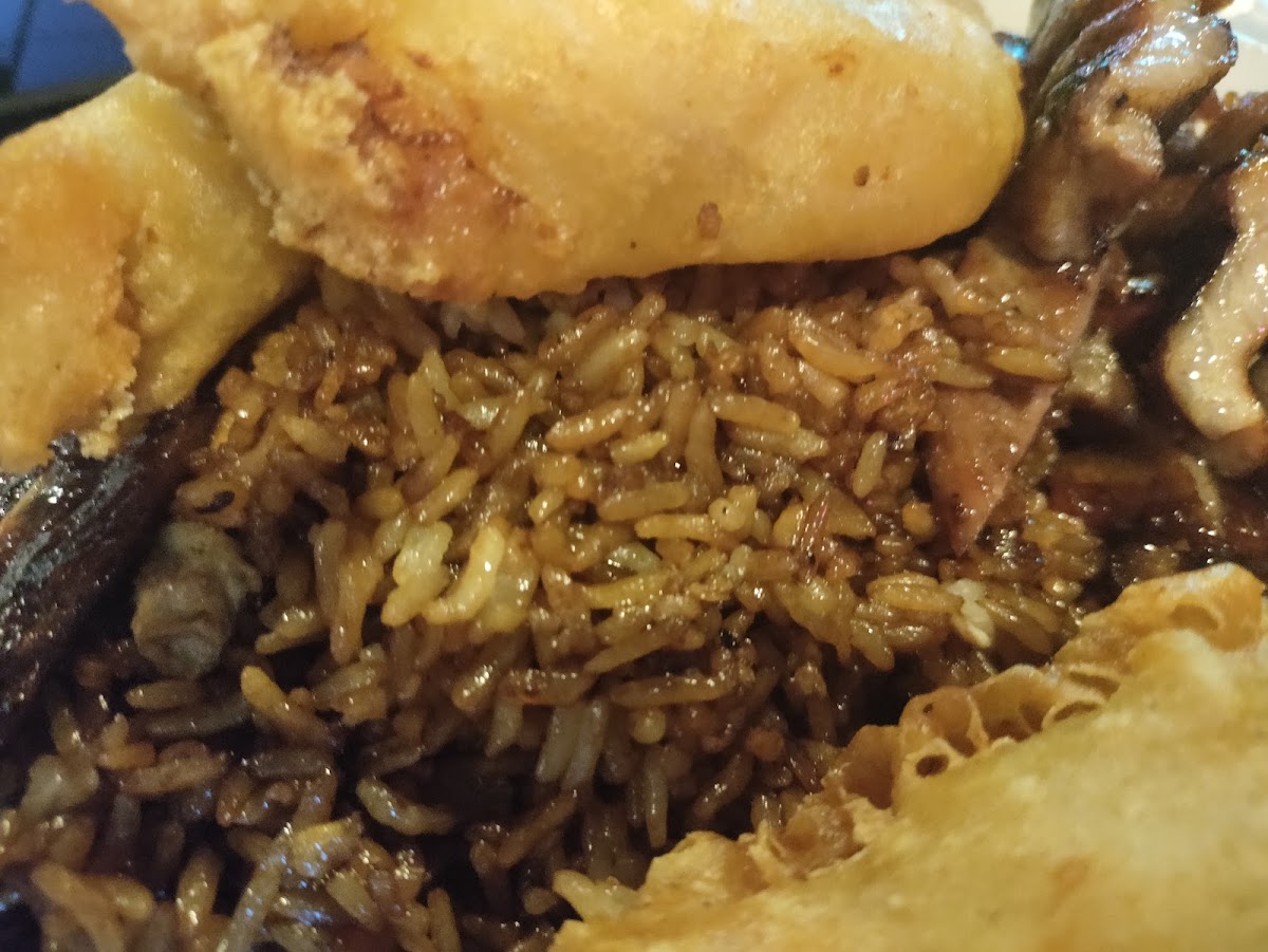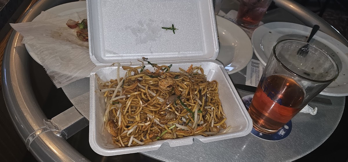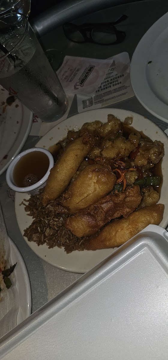 I just ordered a meal to take out - chow mein and chicken and it came with fried rice. It was a very generous portion and packed up nicely. Everything was delicious! I will make that my go- to place for Asian from now on. Bonus-even though it is in a bar, it was immaculate-something most of the local Asian restaurants, except Kyomi, cannot say.