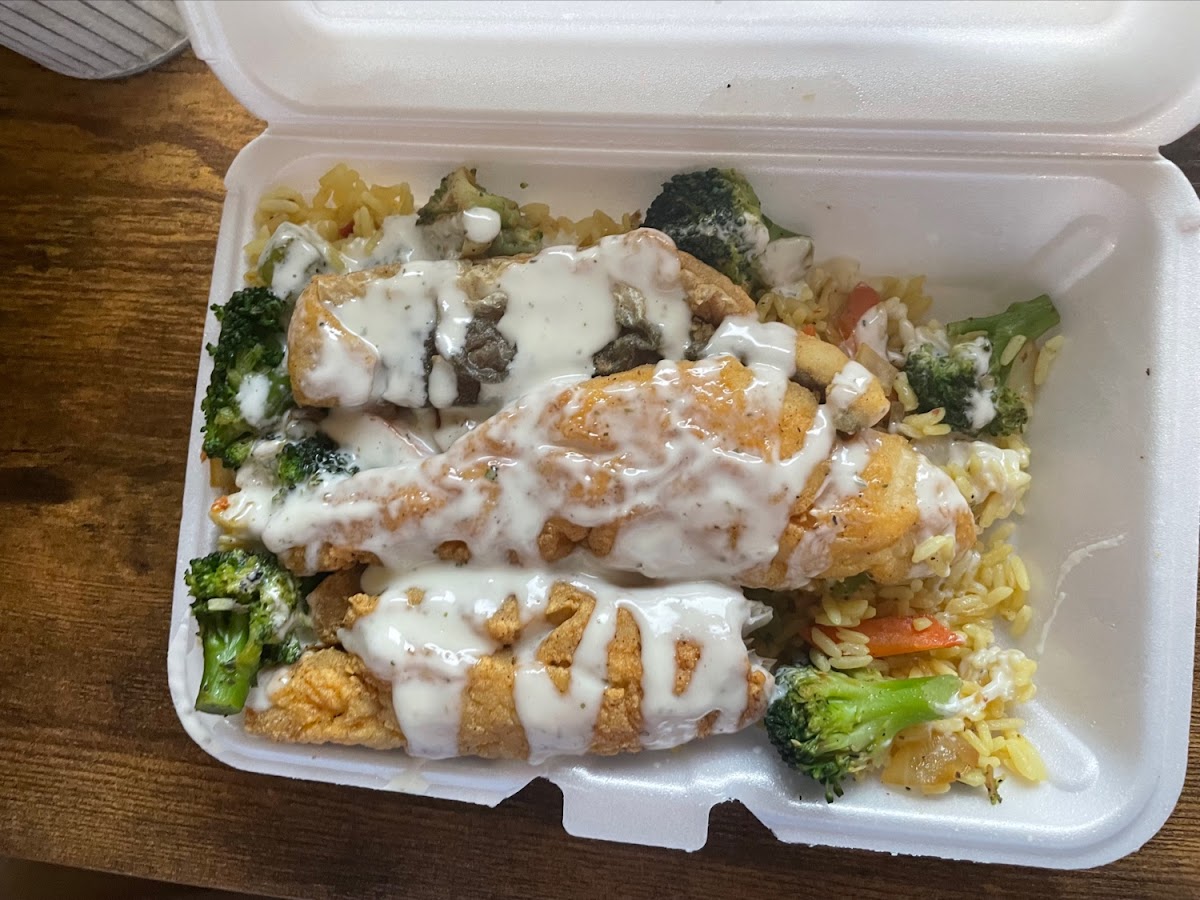 I usually get the salmon platter with rice and Thai sauce. I used to really enjoy this platter. So much so I would go several times a week. I took about a year break and recently went back for a salmon platter and I was surprised the salmon appeared like small pre frozen fillets that were dry. Nonetheless, I will continue to support this black owned business because in general the food is good and the owner is always welcoming!