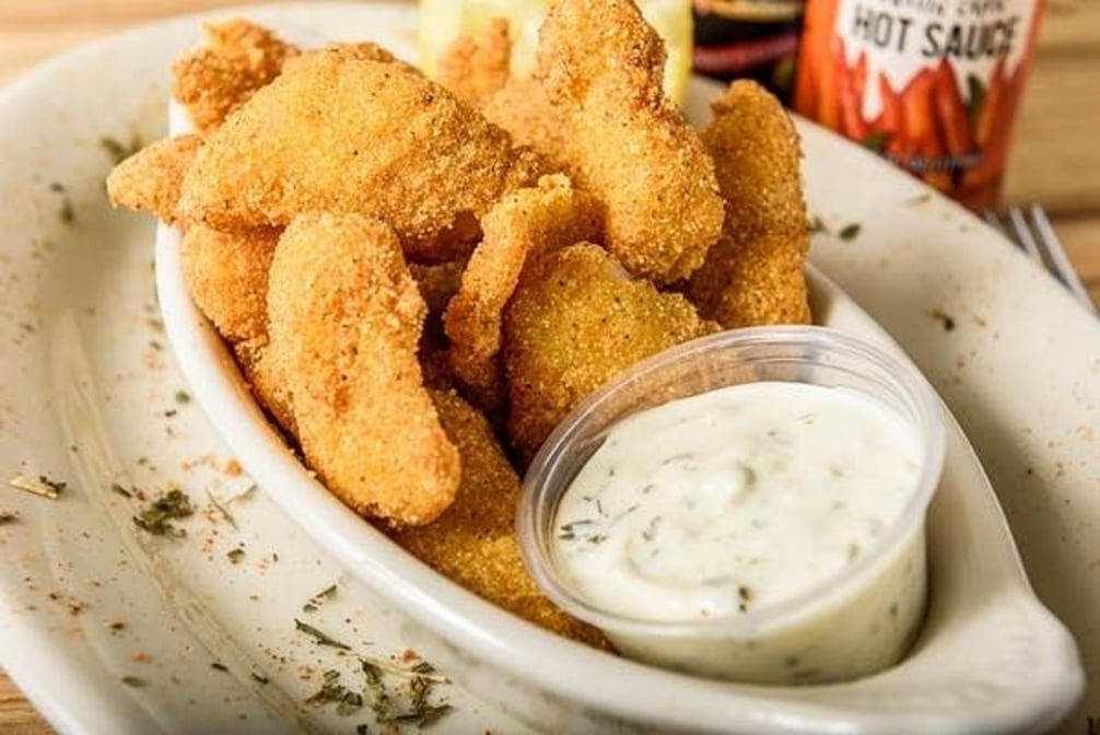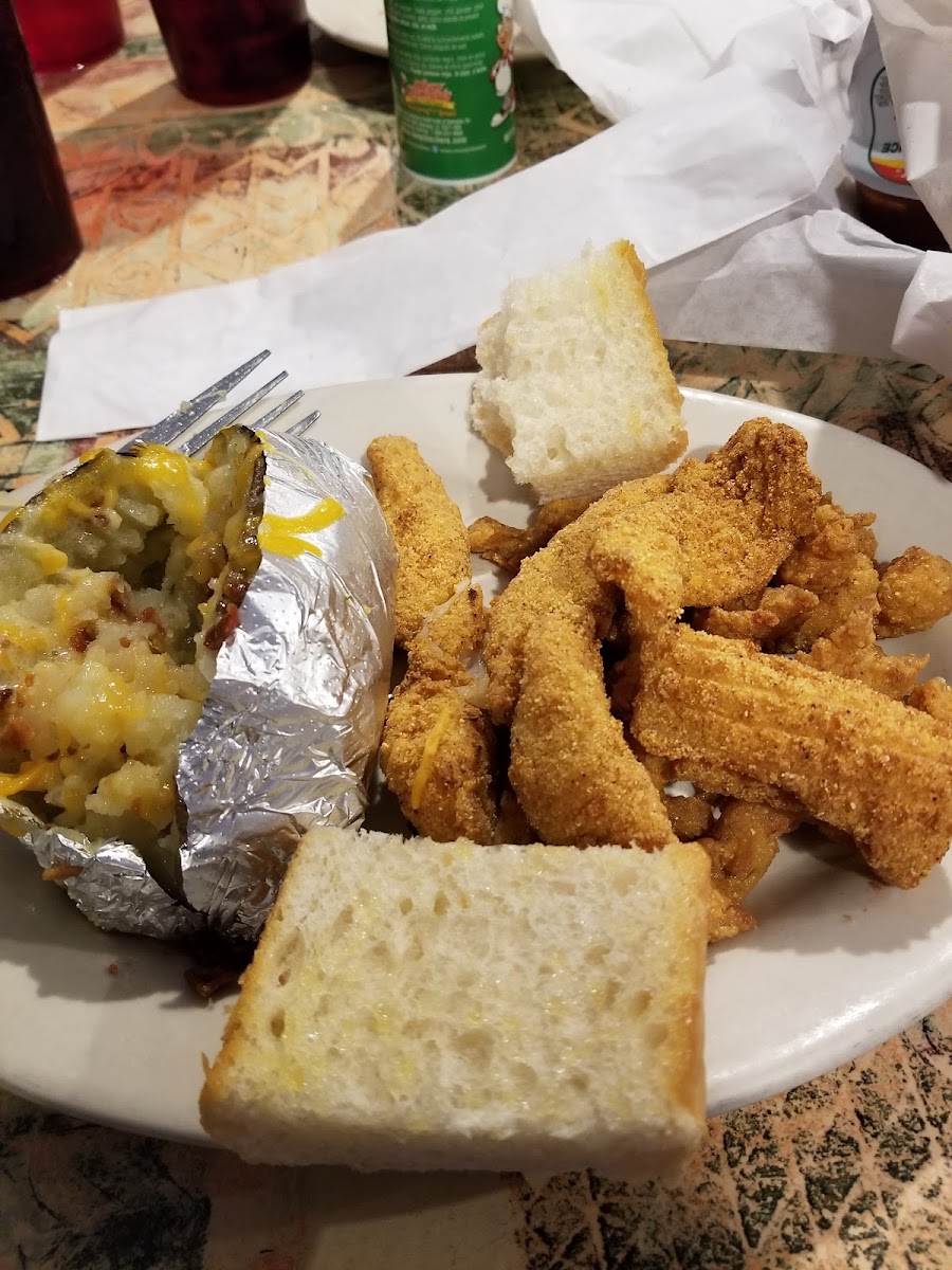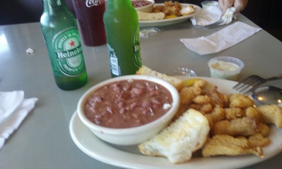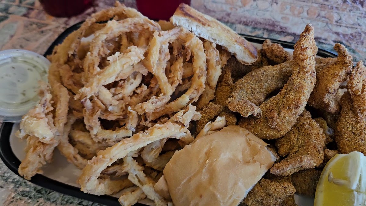 First time visit. Nice little hometown, laid-back restaurant with indoor and outdoor patio seating. I ordered the large catfish plate with homemade onion rings, salad and sweet tea. It was good, and a lot of food. Customer service was great, very friendly, and checked on me several times.
