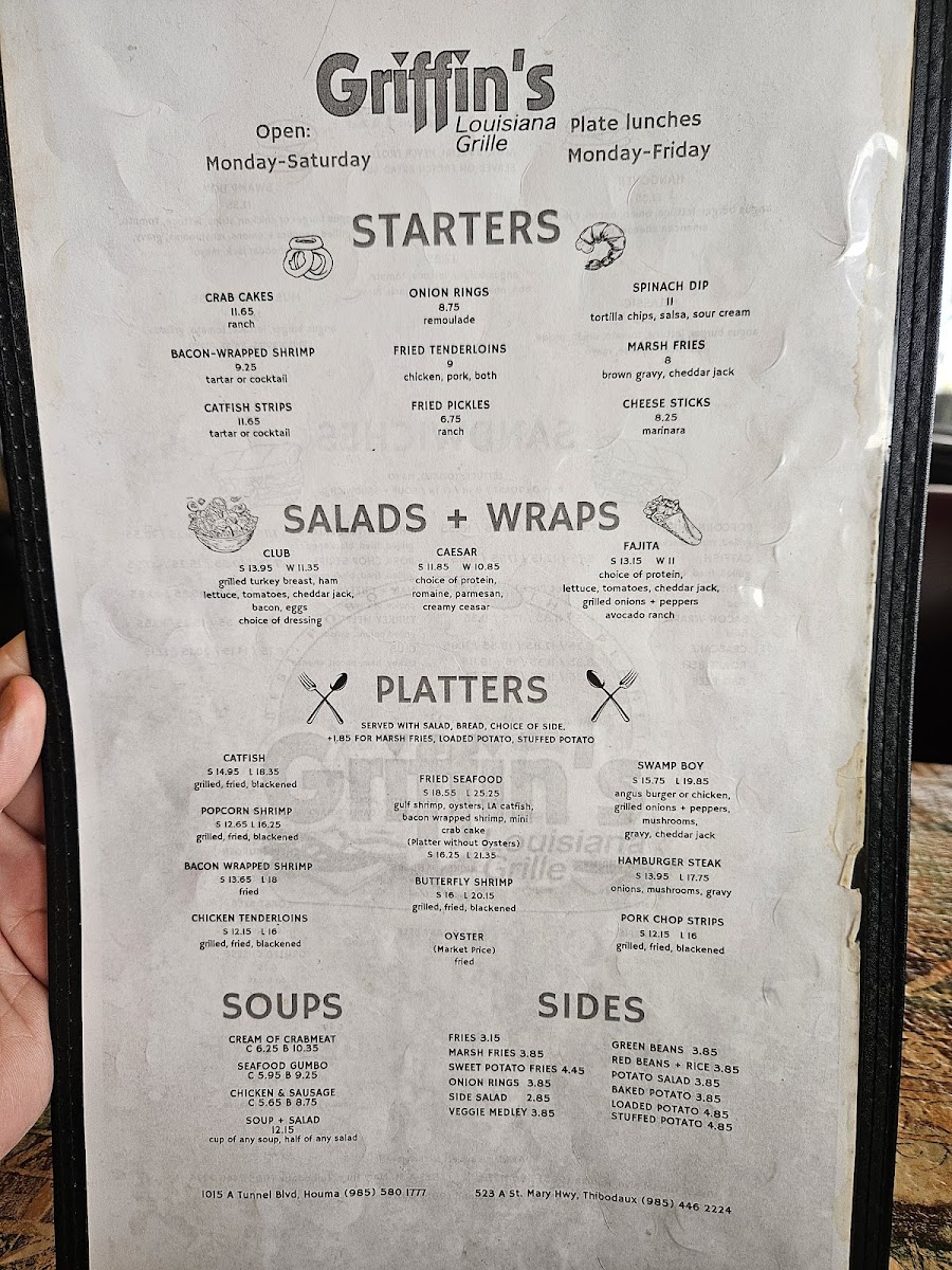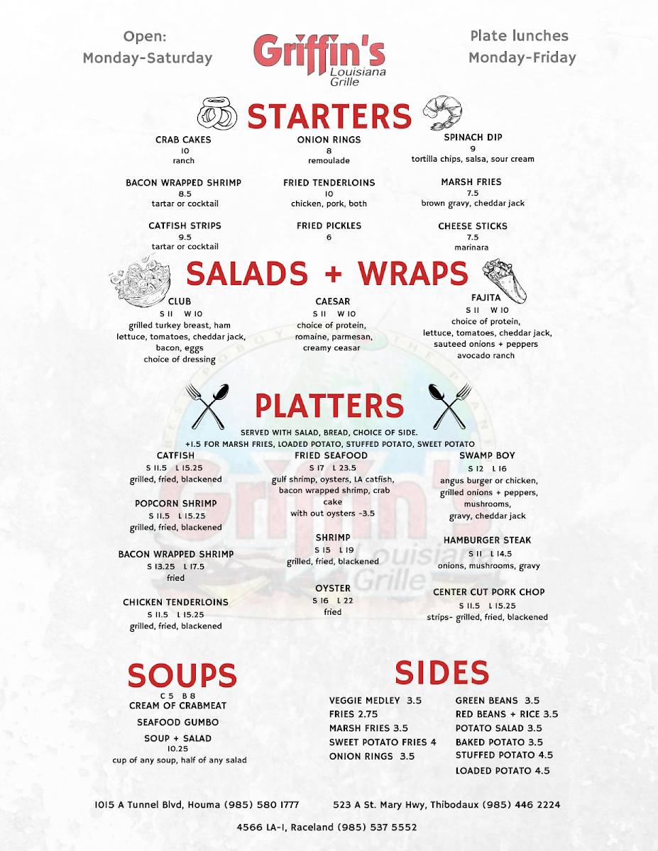 gulf shrimp, oysters, LA catfish, bacon wrapped shrimp, crab cake