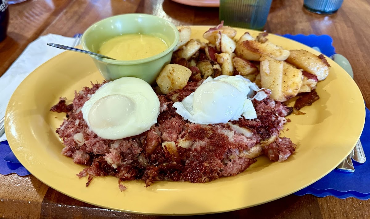 Cool place -- great atmosphere. Easy to relax and just enjoy some hearty breakfast food. I'd stick with the savory stuff. The hash Benedict was particularly fulfilling (the hash itself was amazing, though, if I'm going to be real picky, the hollandaise sauce was a bit split, which isn't ideal). The baked beans were also delicious, and, as a bonus, the view from the parking lot was peaceful. Overall, definitely worth the visit.