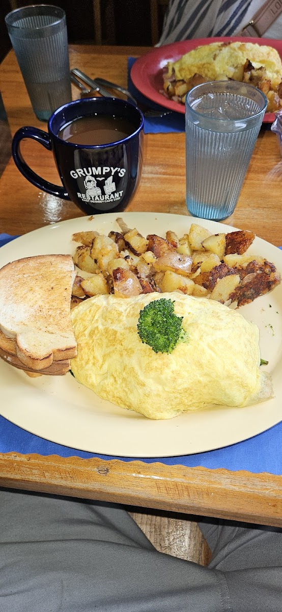 First time at Grumpy's and we had a great time. Had the scramble with linguica, amazing! And the quiche with tomato bacon and cheese, fantastic. And blueberry pancakes, perfect. Bonus, we sat outside and saw a stoat!