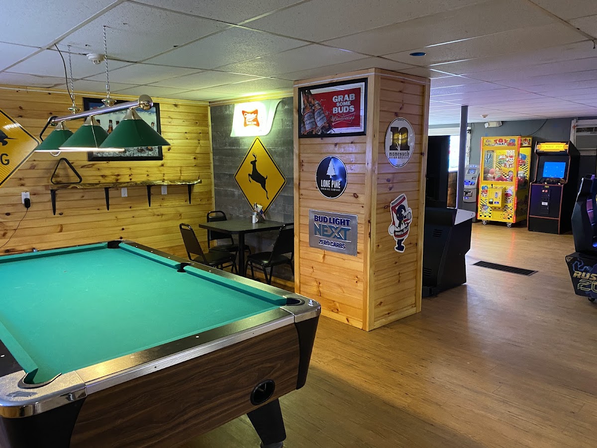 Great spot, I stopped in during a snow storm, so it was pretty dead , but they were open and still serving food . Family place definitely kid friendly, old school arcade games and the food was delicious. Seriously delicious, in a small corner spot, that doesn't look like much from outside ( my kinda place ) the food was made with heart. And had a fun twist, also huge portions. I'll be back , The staff was awesome, had a chance to meet the chef/owner so friendly, places like this are rare, stop in play some ski ball, chill, and eat hardy. It's a hidden gem , and I'm guessing the staff can point you to plenty of other hidden gems . Start your Sebago lake adventures here .